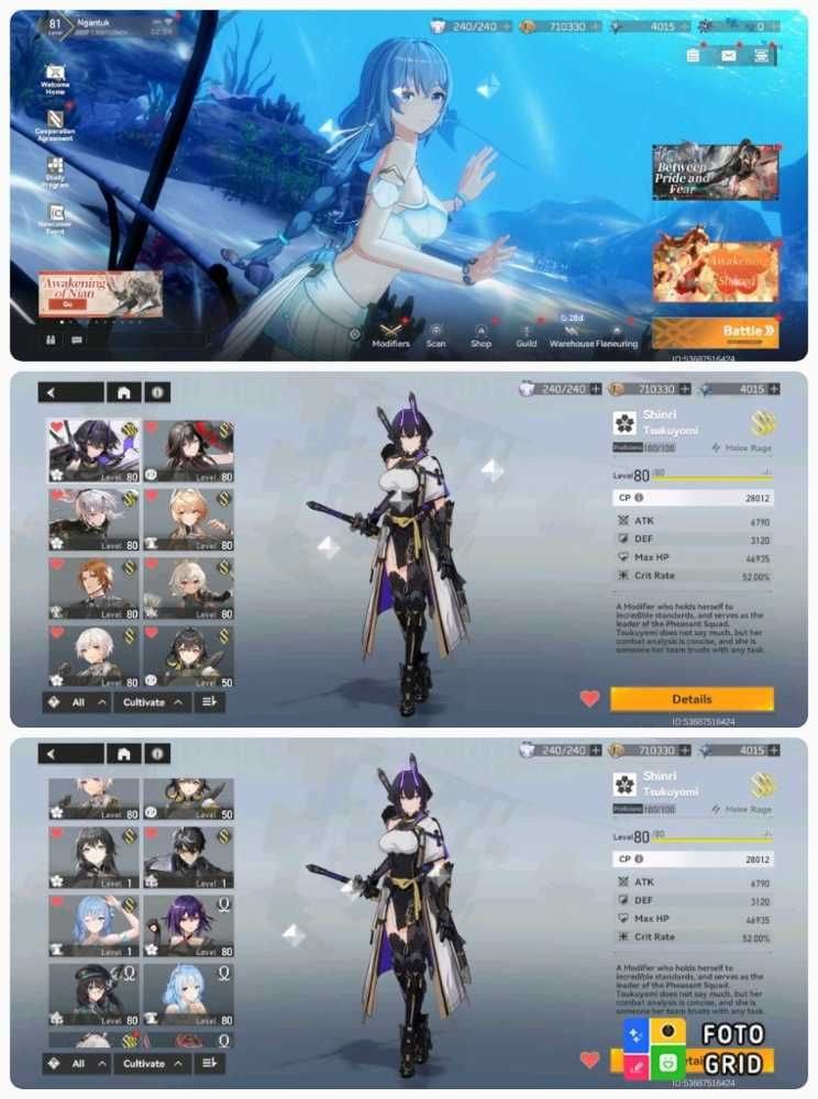 spek account – account f2p – id level 81 – Story low explore ( Farmingable ) – Story normal end chapter 9 – Story hard end chapter 7 – Side story untouched – Casuality survey stage 4 70% – Past grudges End stage 7 – 4015 shifted star + 9 limit ticket + 2 normal ( standart ) ticket – Banner limit character S rank pity 7/70 – Banner normal ( standart ) character S rank pity 61/70 Rate on