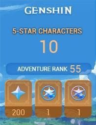 AR58 10 5 Characters 12 weapons 5 | Venti | Xiao | Itto | ayaka | Raiden Shogun c2 | Yae Mikko | Jean c5 | lots of c6 4NU97