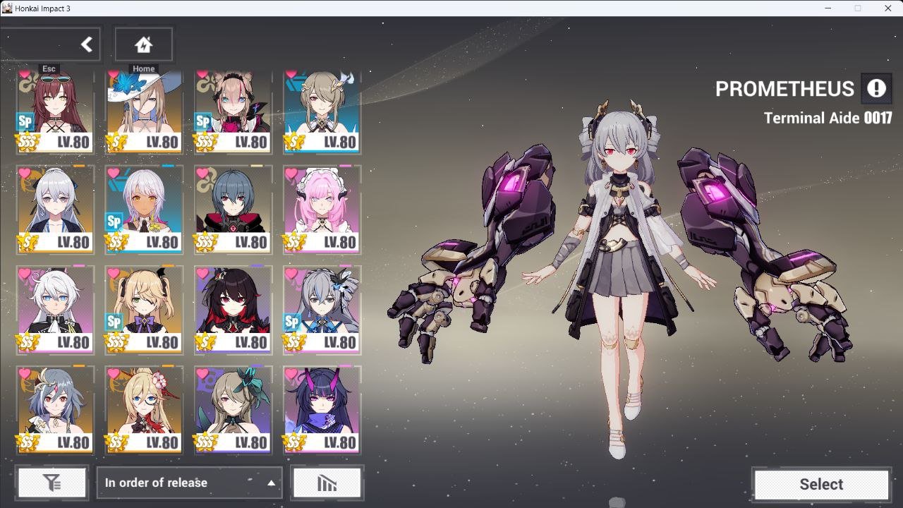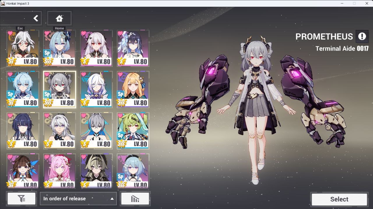 SSS Helia-3/4 S Coralie 3/4 SS Shigure Kira 0/4 SSS PROMETHEUS 0/4 SSS SUSANNNAH 0/4 SSS AI HYPERION 4/4 SSS