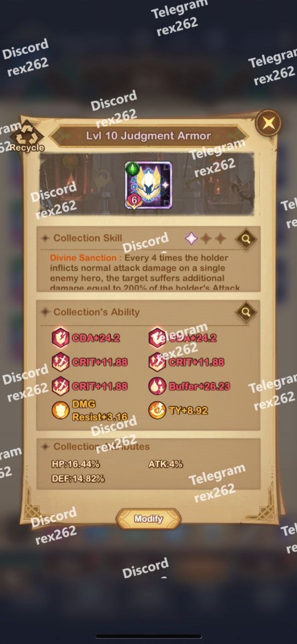 Multiple Level 10 Legendary Gear Sets, including “Judgment Armor,” “Luminous Flight,” and “Oculus Diabolus.