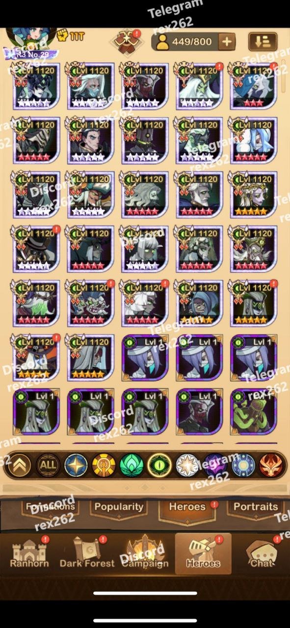 Wide range of legendary heroes from all factions, fully ascended and optimized for formations.