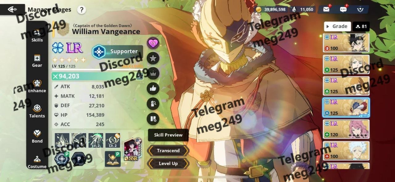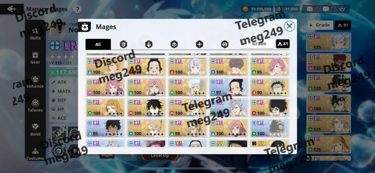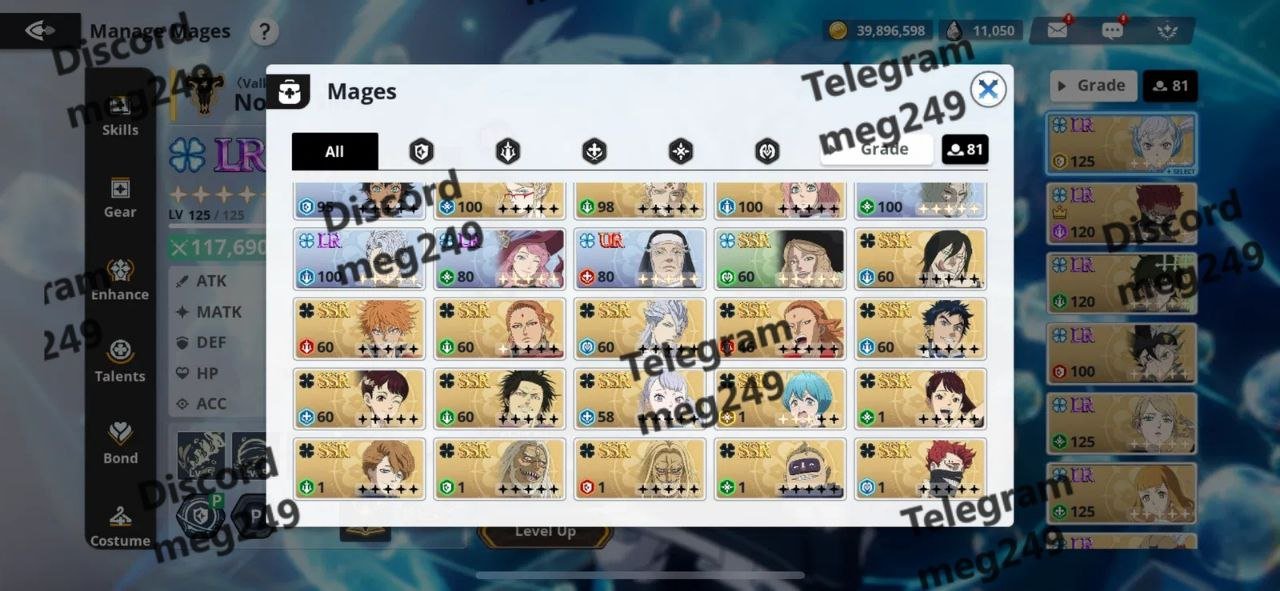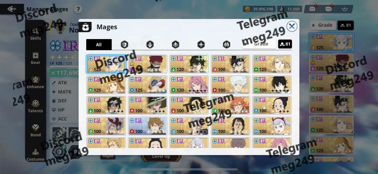 Caption: Selling high-tier Black Clover M account featuring:
