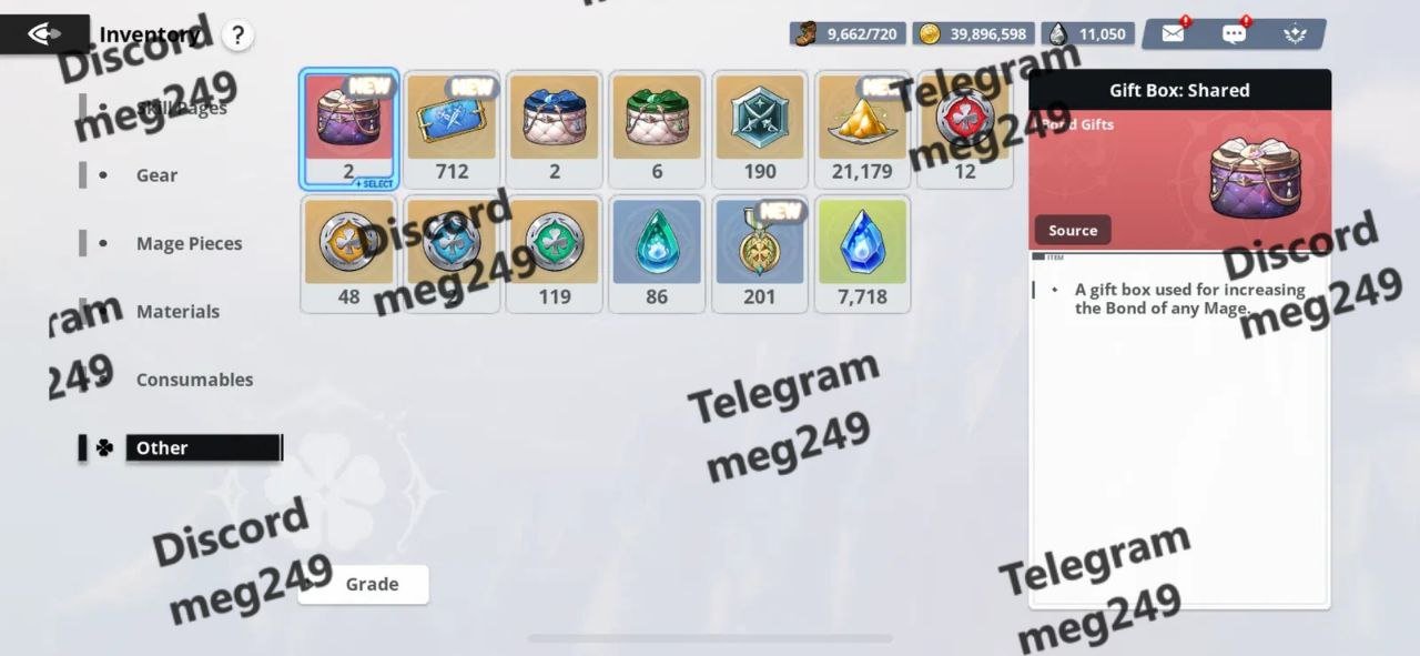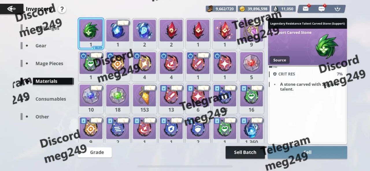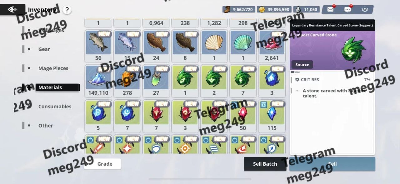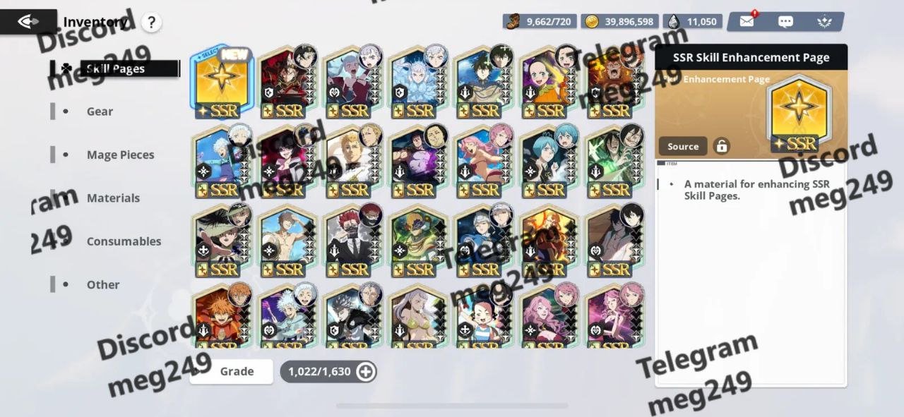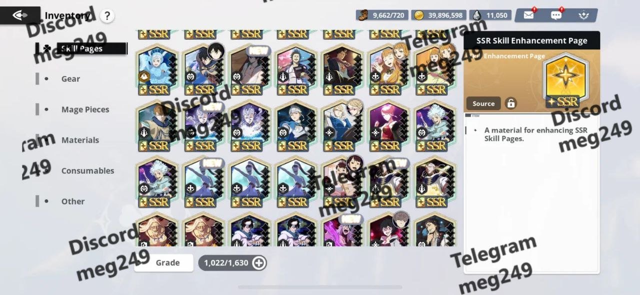 Materials: Various SSR and SSSR enhancement materials, skill books, and versatile mage pieces