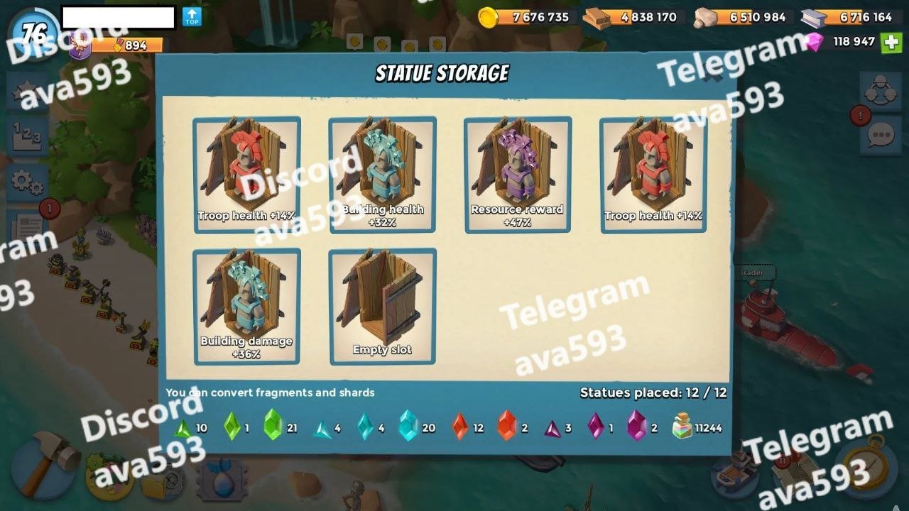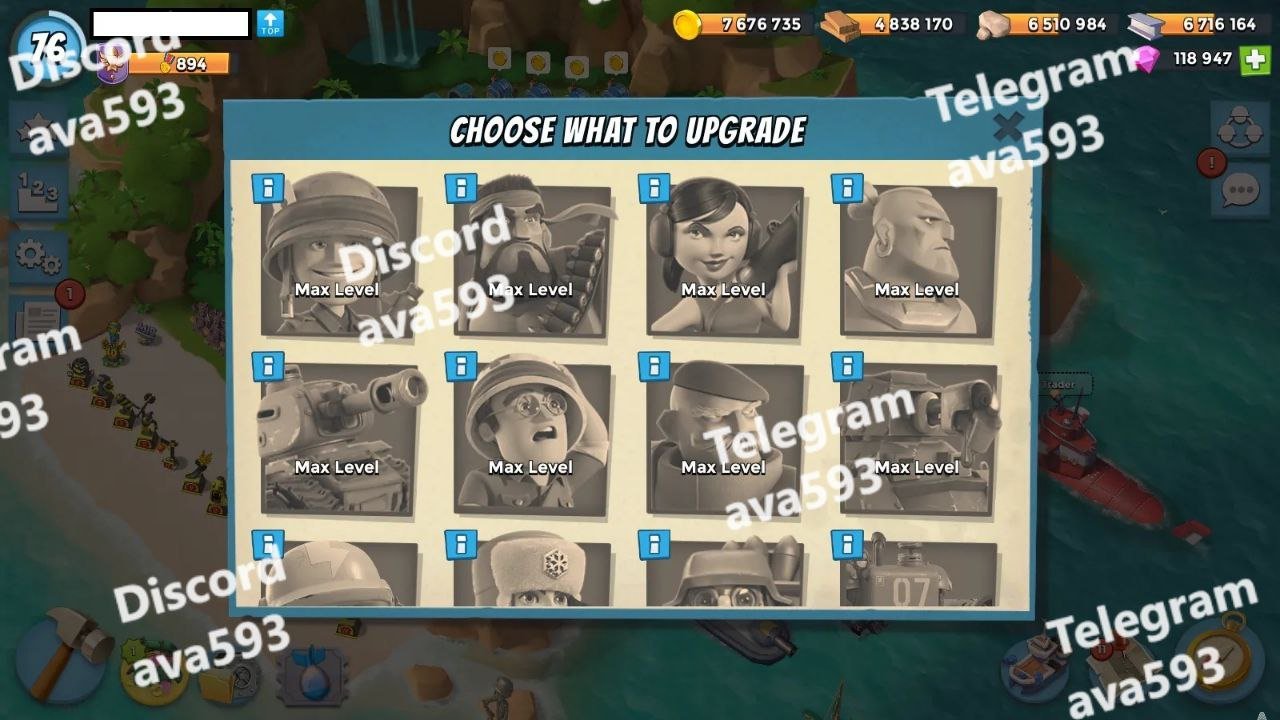 More Details: Troop damage +32,13,13,13,13,12 – Troop health +34,14 – GunBoat +42,17,17,17,17 + 118K