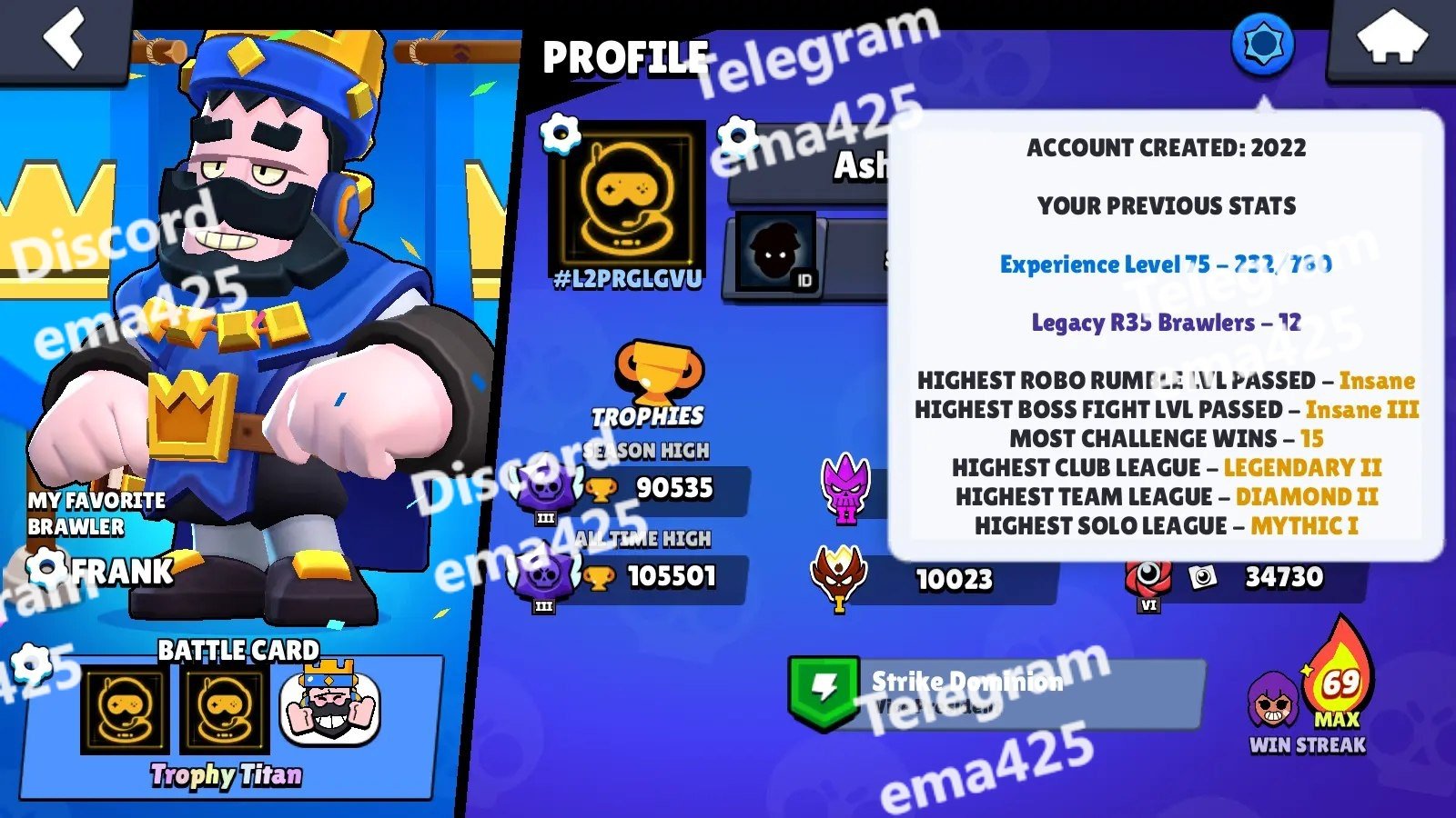 • All-Time Highest Trophies: 105,501
