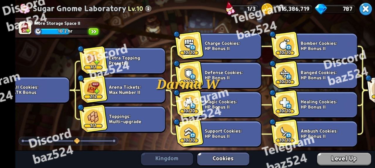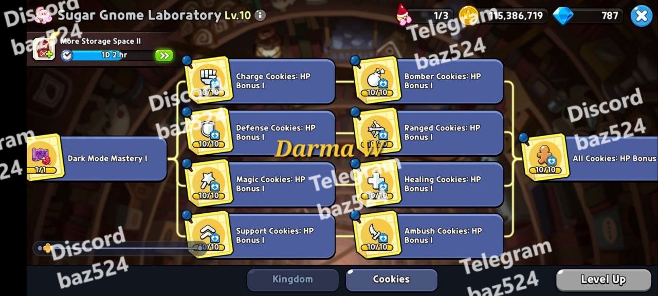 Laboratory Lv 10: Fully upgraded Sugar Gnome Lab with research completed on key cookie types: Charge, Magic, Bomber, Ranged, and more for increased power and versatility in combat.
