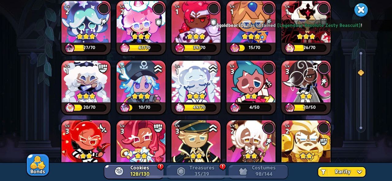 CRK311: Lv49 – 2099k Powers – Castle level 11 – 128/130 Cookie | Elite 4 – Hollyberry