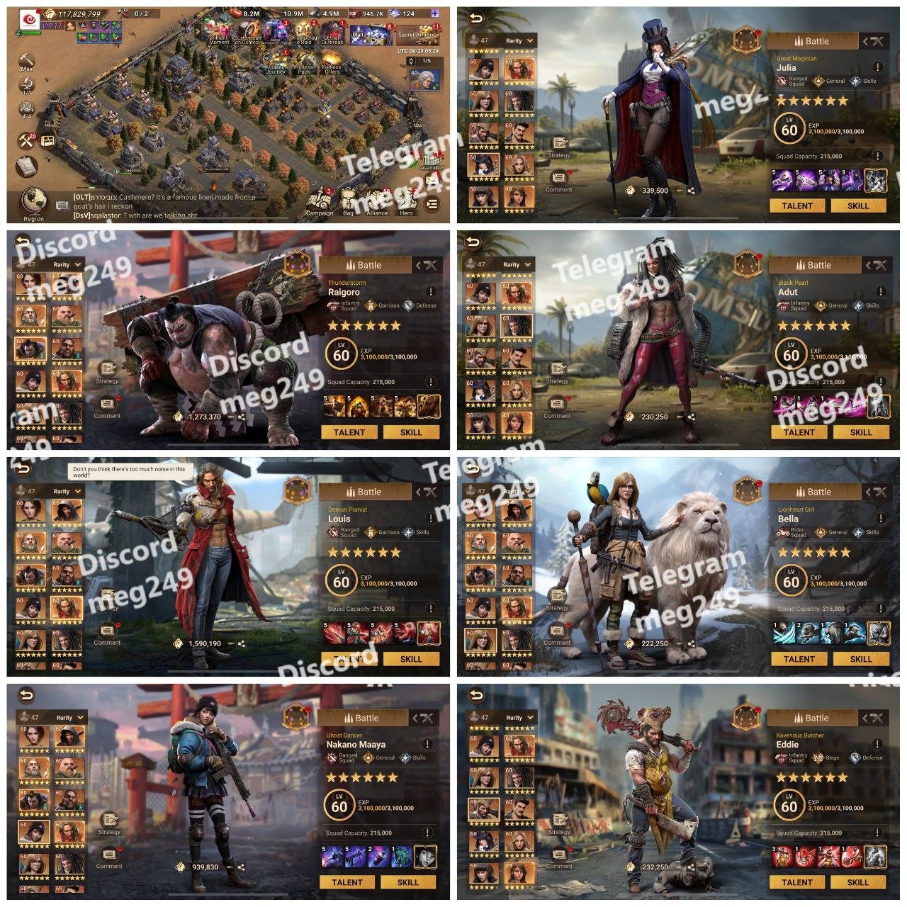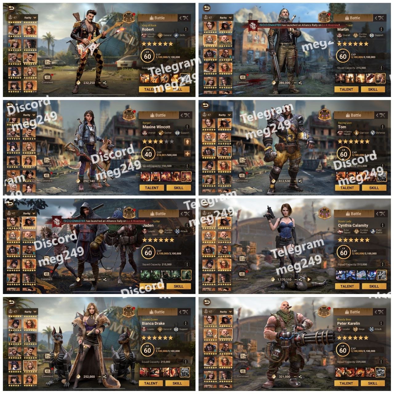 Fully Maxed Commanders (Level 60), including: