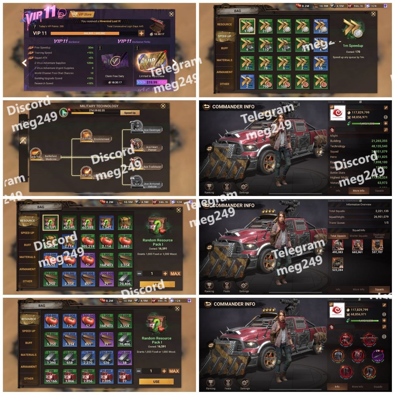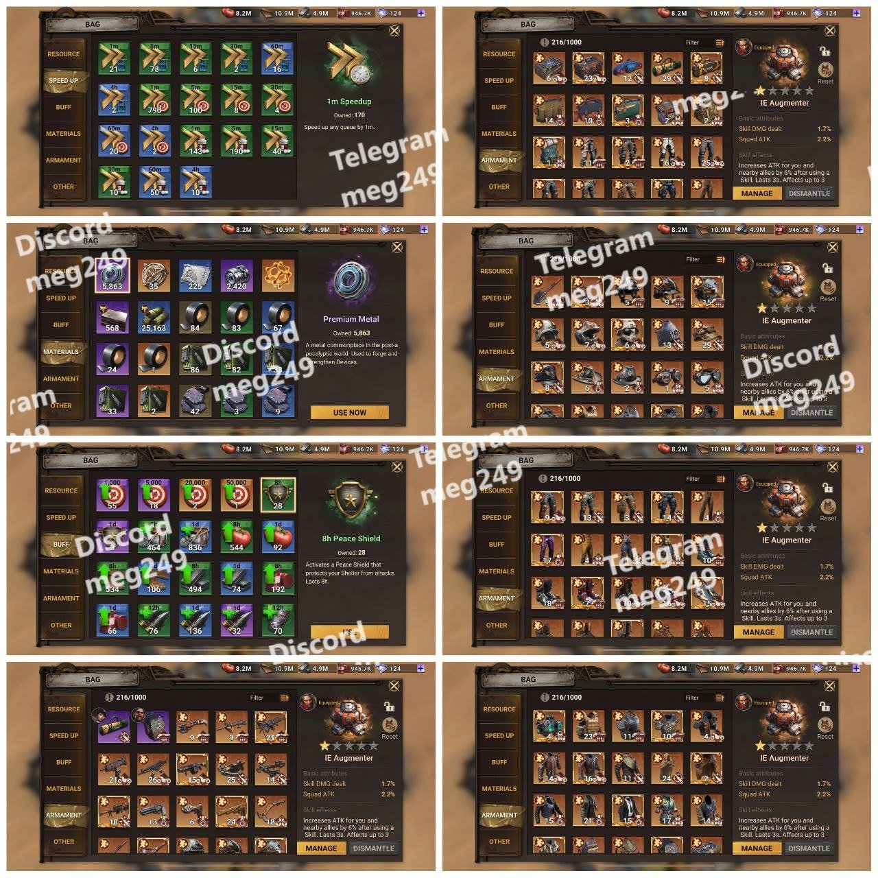 Over 2,000+ speedups, buffs, and armament materials.