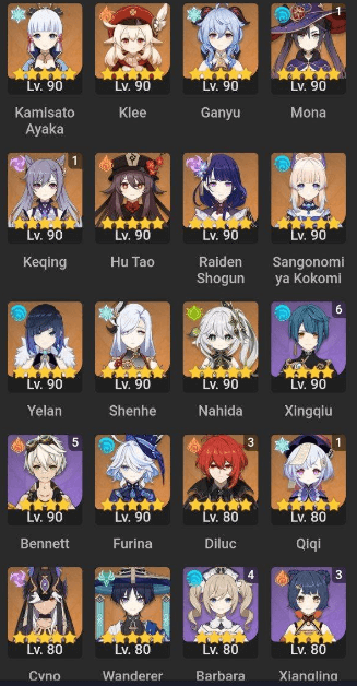 EU. AR 59 [Full Access] Hu Tao C1 + Staff of Homa | Ayaka C1 | Ganyu C3 | Zhongli C1 | Eula | Klee | Mona C2
