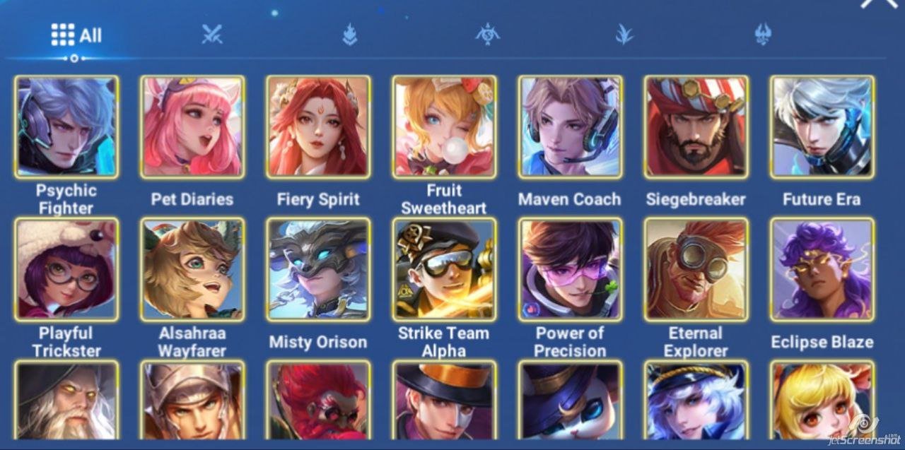 Skins: WORLDLY: Yang Jian (Siegebreaker) S2: Biron (Fate Arena) S7: Guiguzi (Misty Orison) CHAMPION: Zhou You (Eclipse Blaze) EPIC: Artur (Psychic Fighter) EPIC: Lady Sun (Fruit Sweetheart) EPIC: Da Qiao (Pet Diaries) EPIC: Diaochan (Fiery Spirit) EPIC: Liang (Maven Coach) EPIC: Zilong (Future Era) RARE: Li Bai (Power of Precision) RARE: Fang (Alsahraa Wayfarer) RARE: Angela (Playful Trickster) RARE: Hou Yi (Strike Team Alpha) RARE: Ziya (Envoy of Flame) And another skins