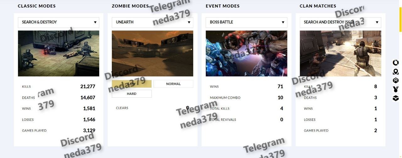 Clan Matches: Extensive experience in Elimination, Search & Destroy, and Team-Based modes,