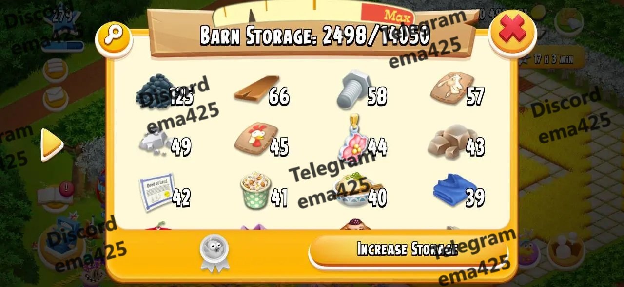 • Barn: 14,050 capacity (current shown 2,498/14,050)