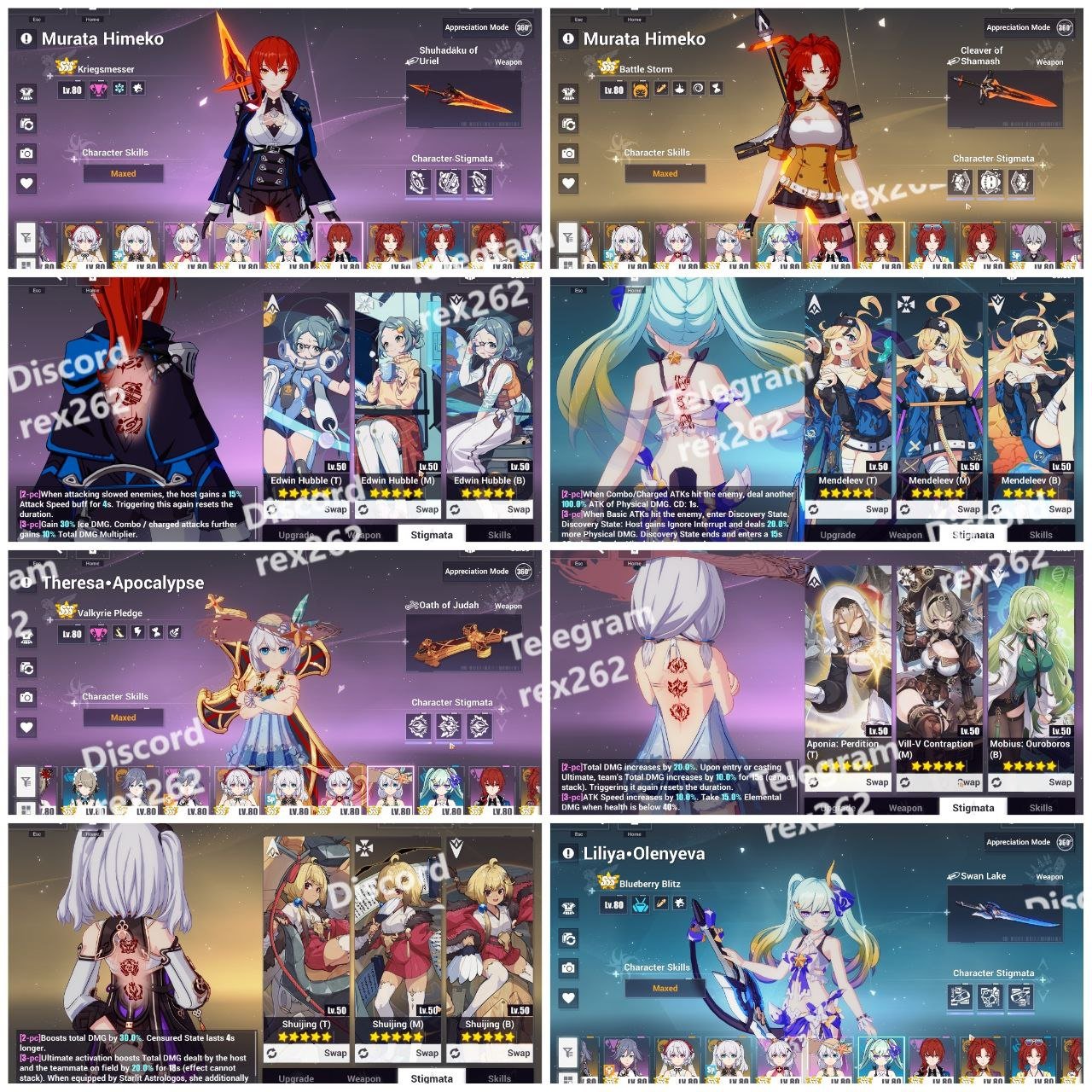 • Herrscher of the Void (Kiana Kaslana): Fully maxed with signature stigmata and weapon.