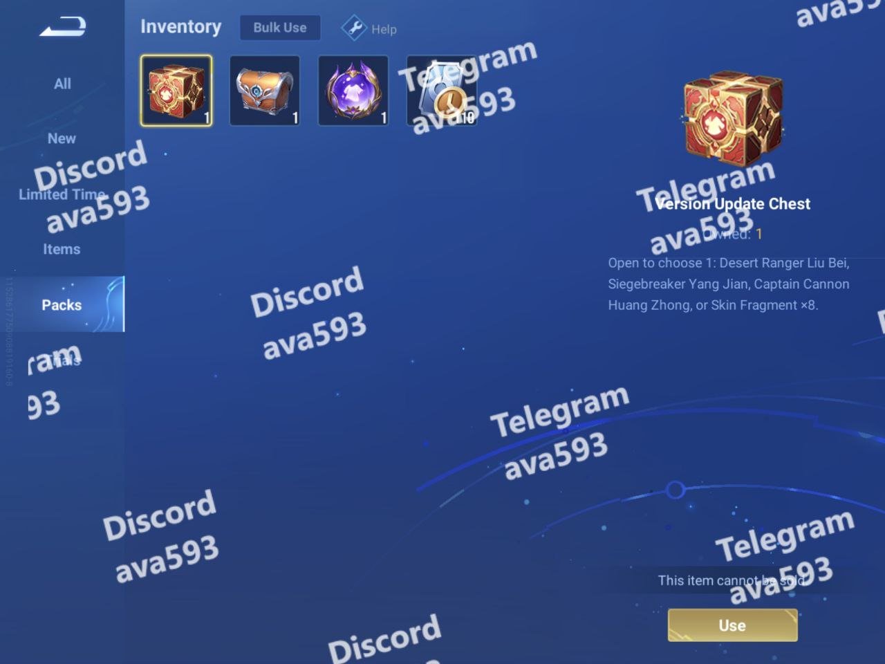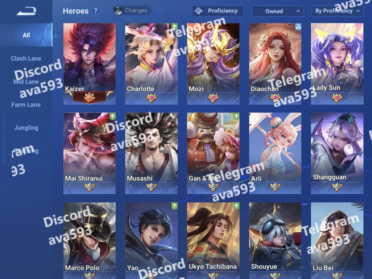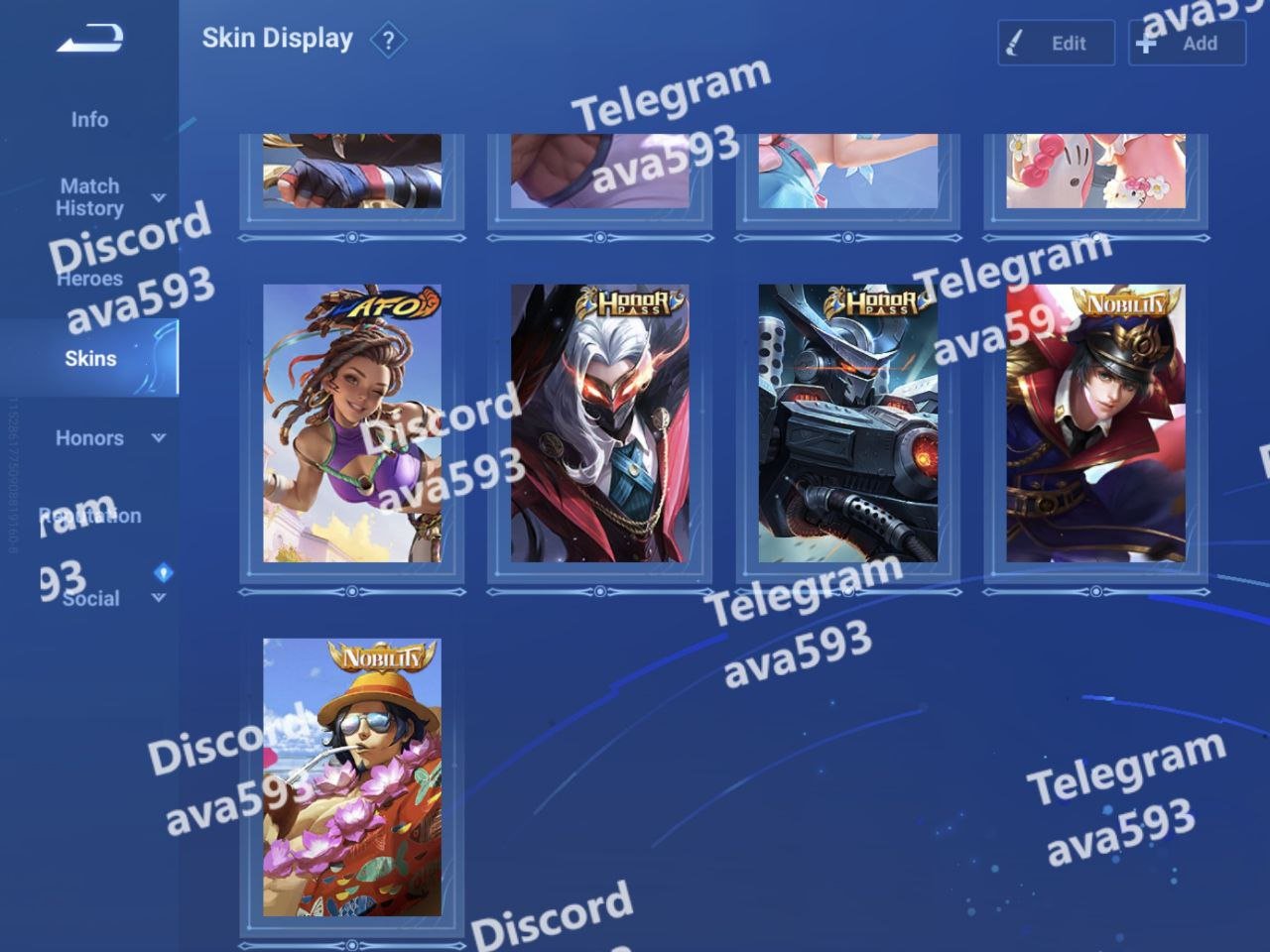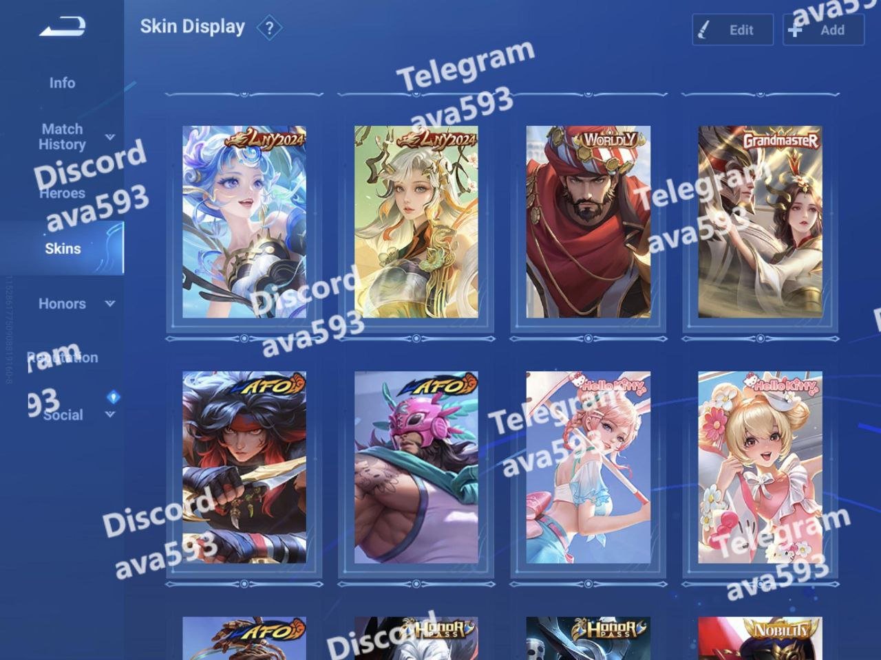 Skin: Kaizer (Hades), 4 Blessed (Mai Shiranui, Charlotte, Ukyo Tachibana, Lady Sun) , 2 LNY2024, 4 Sain Seiya, 3 Legend, 3 AFO, 2 Limited, 2 Hello Kitty
