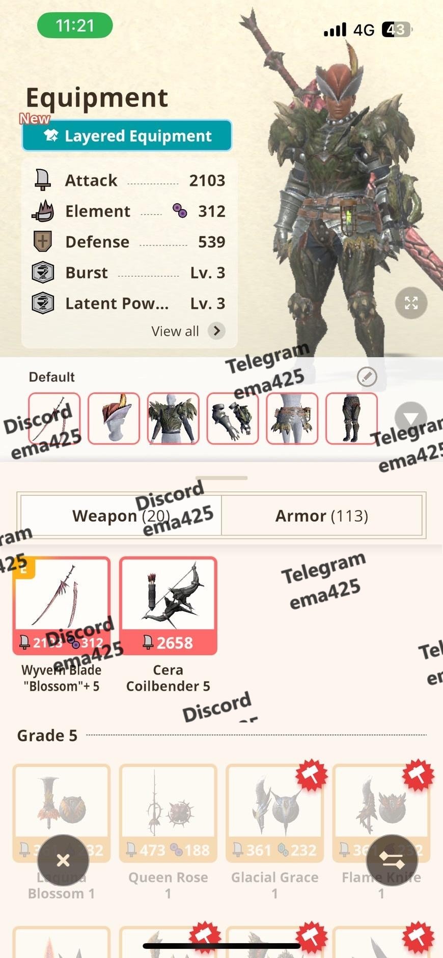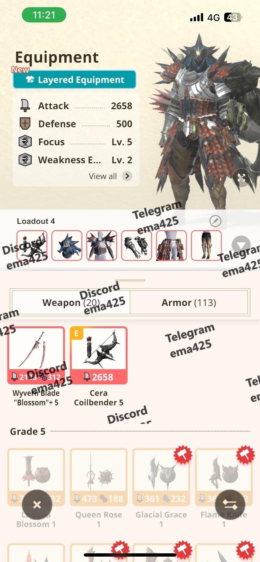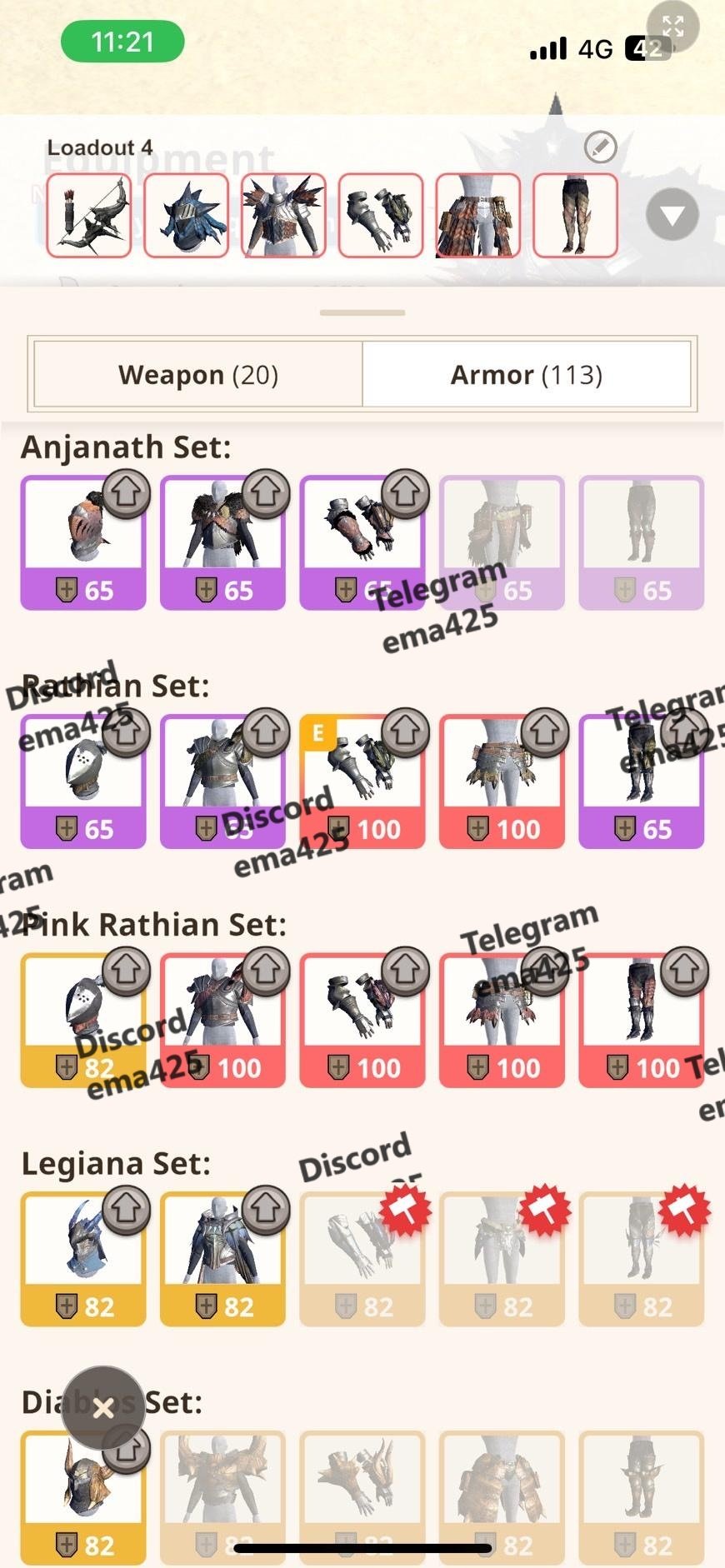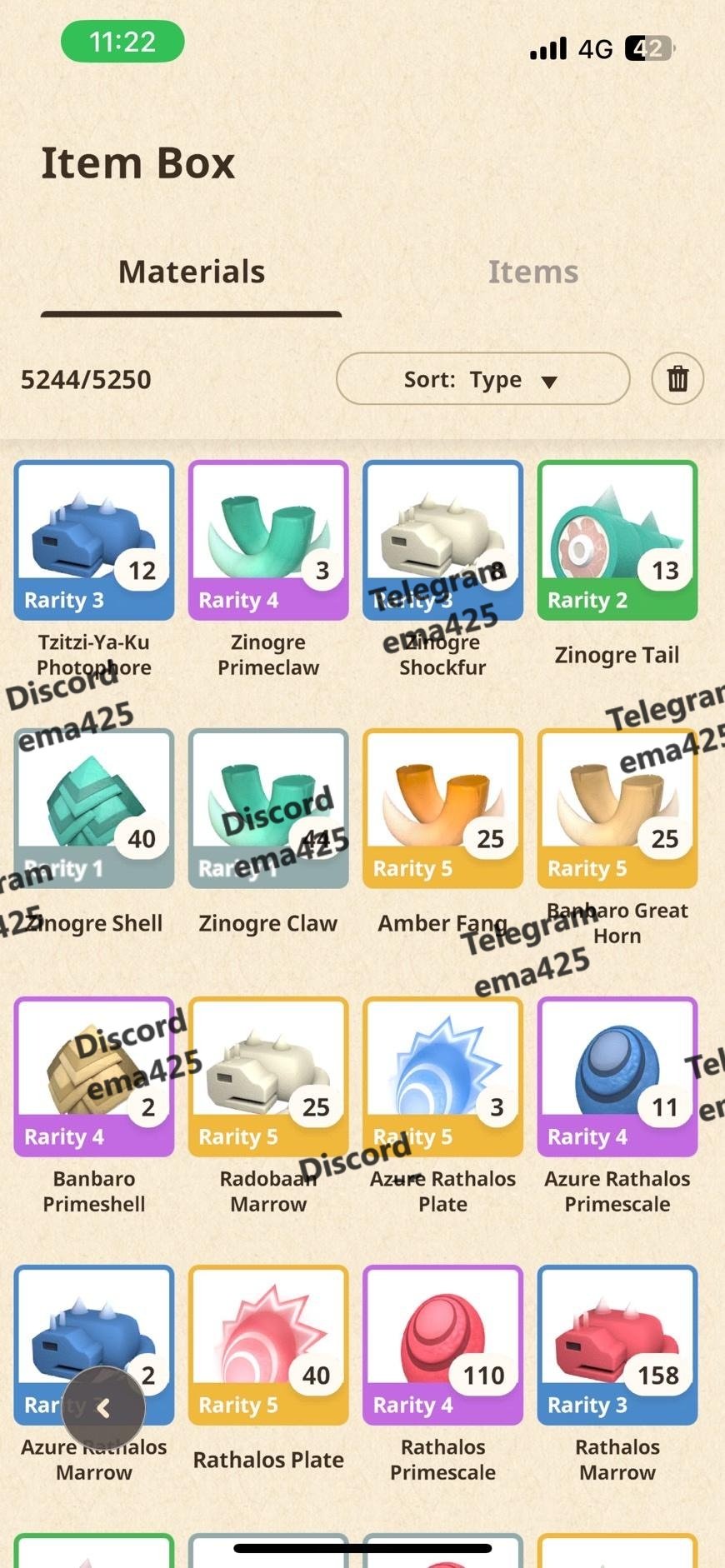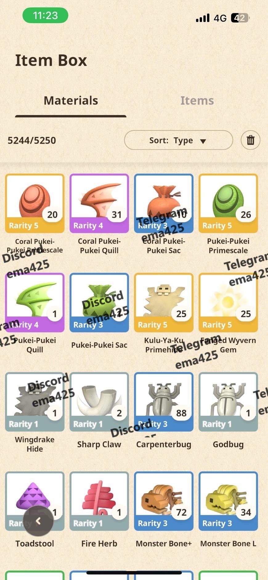 • Legiana Plate ×41, Webbing ×157, Claw ×214, Scale ×865