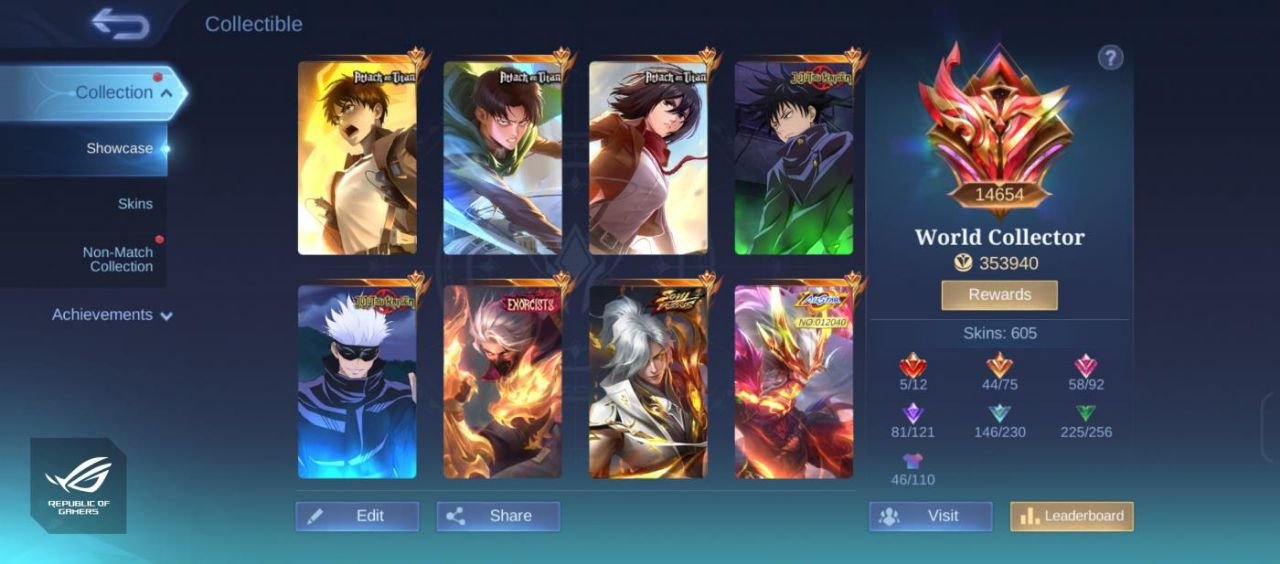 IOS/ANDROID | WORLD COLLECTOR | HIGHEST RANK IMMORTAL 337 | 606 SKIN | 5 LEGEND | 3 ATTACK ON TITAN | 2 JUJUTSU KAISEN | 5 ASPIRANT | 20 COLLECTOR