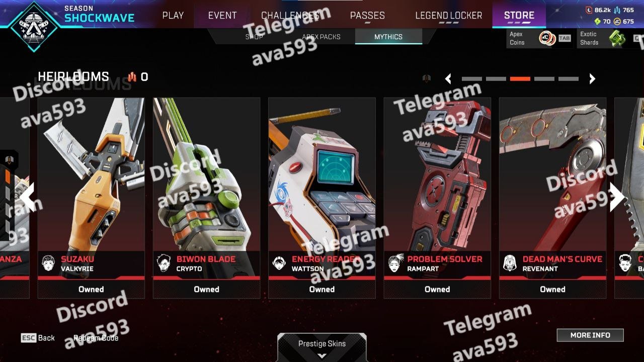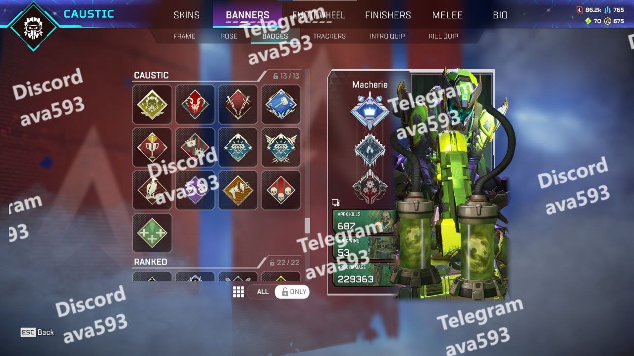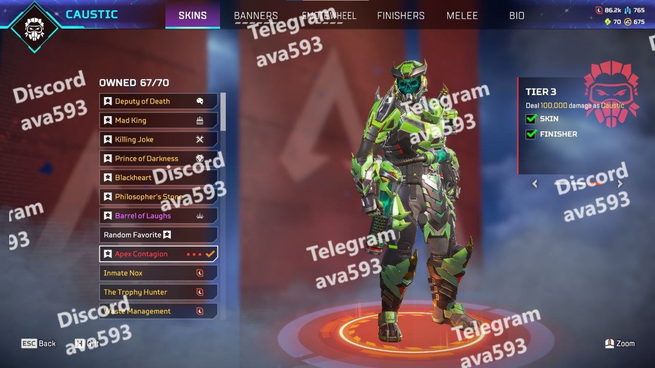 • Caustic: 67/70 Skins Unlocked