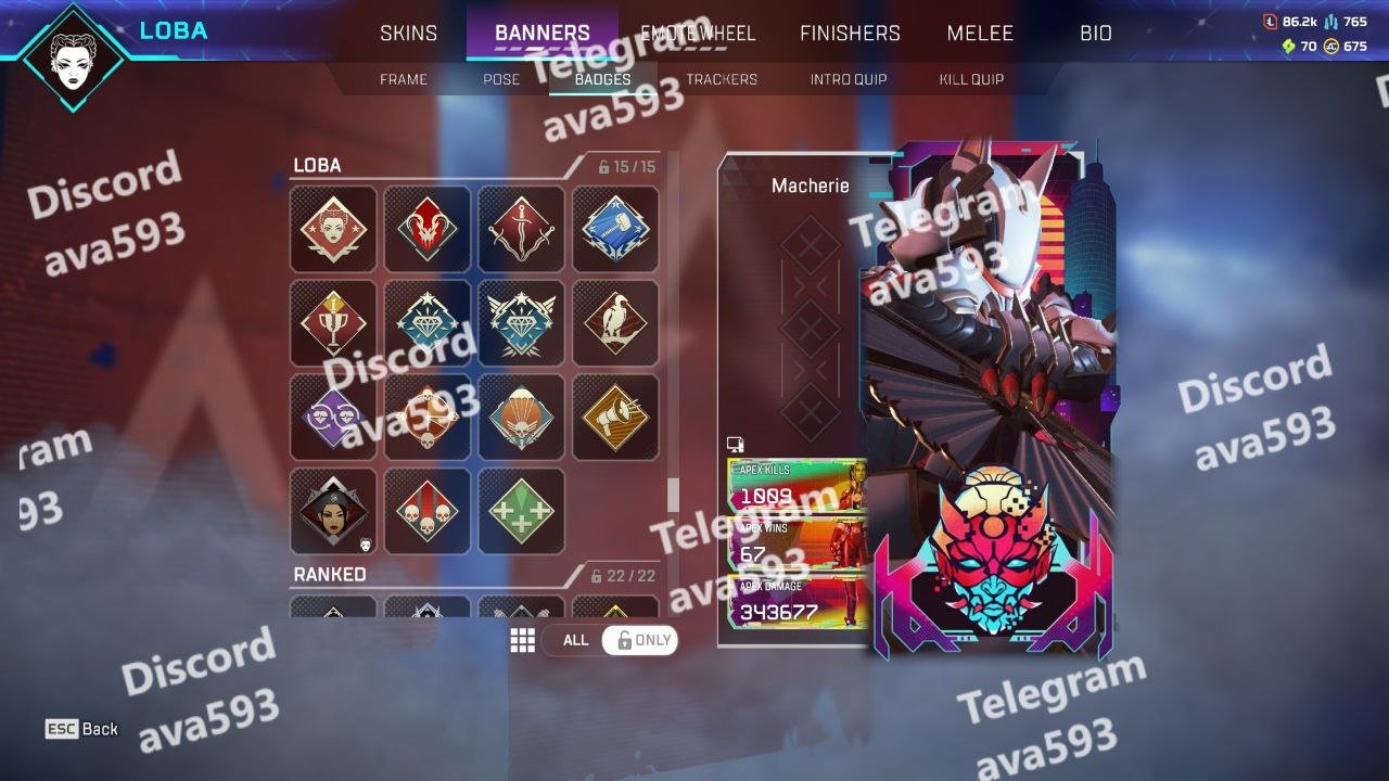• Loba: 1899 Kills | 67 Wins | 343,627 Damage