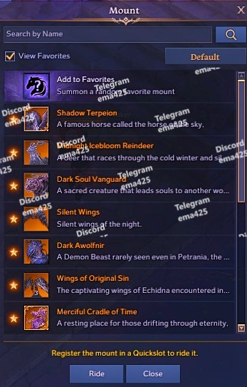 • Premium mounts: Shadow Terpeion, Midnight Icebloom Reindeer, Dark Soul Vanguard, Silent Wings, Dark Awolfnir, Wings of Original Sin, Merciful Cradle of Time