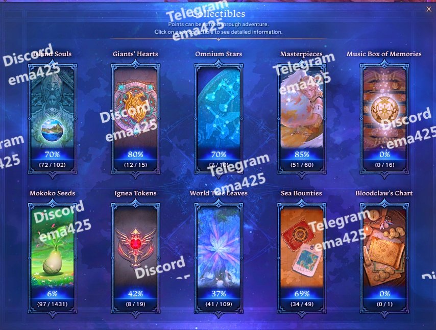 • Masterpieces 85% | Giants’ Hearts 80% | Island Souls 70% | Omnium Stars 70%