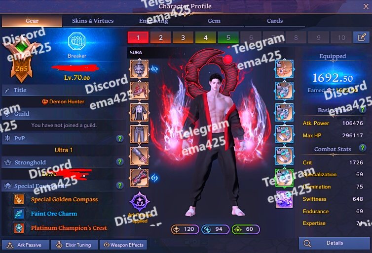 Breaker 1692 ilvl | Full AP, Ancient Accessories, +18 Weapon, Full Advanced Honing, BIS Elixirs