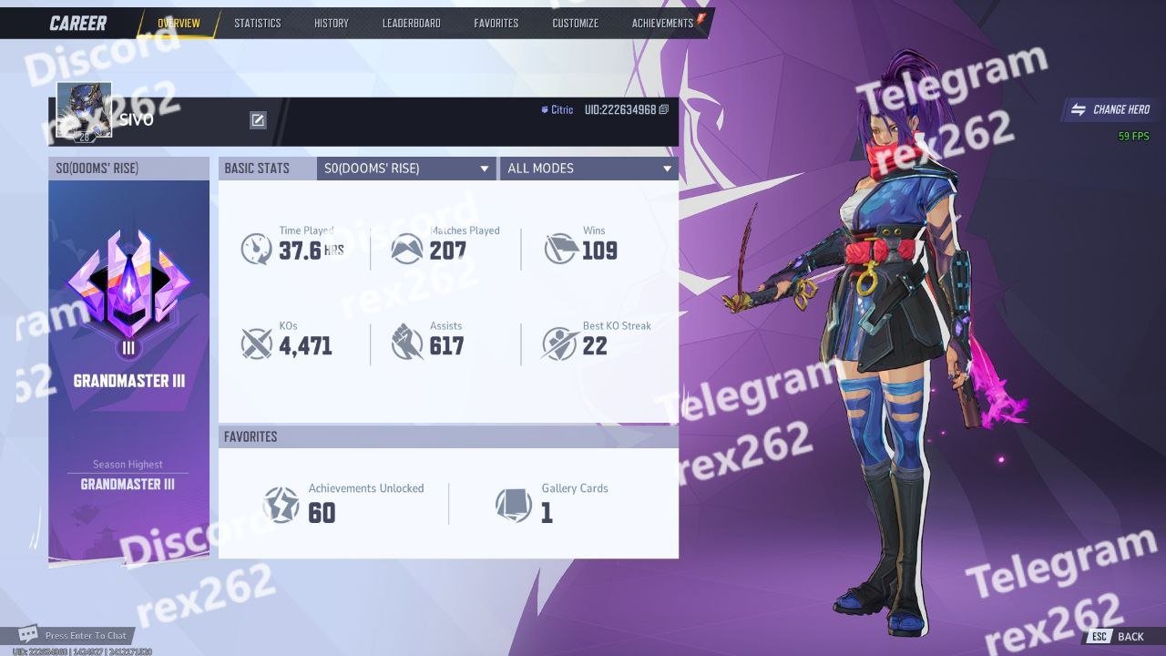 • Top Heroes Played: Psylocke, Hela, Hawkeye, Luna