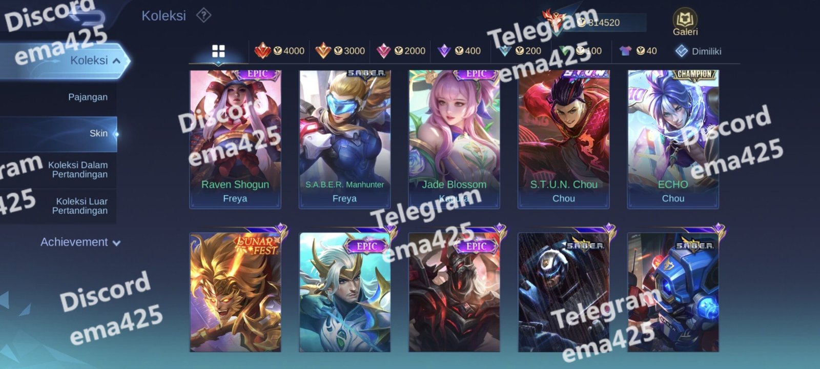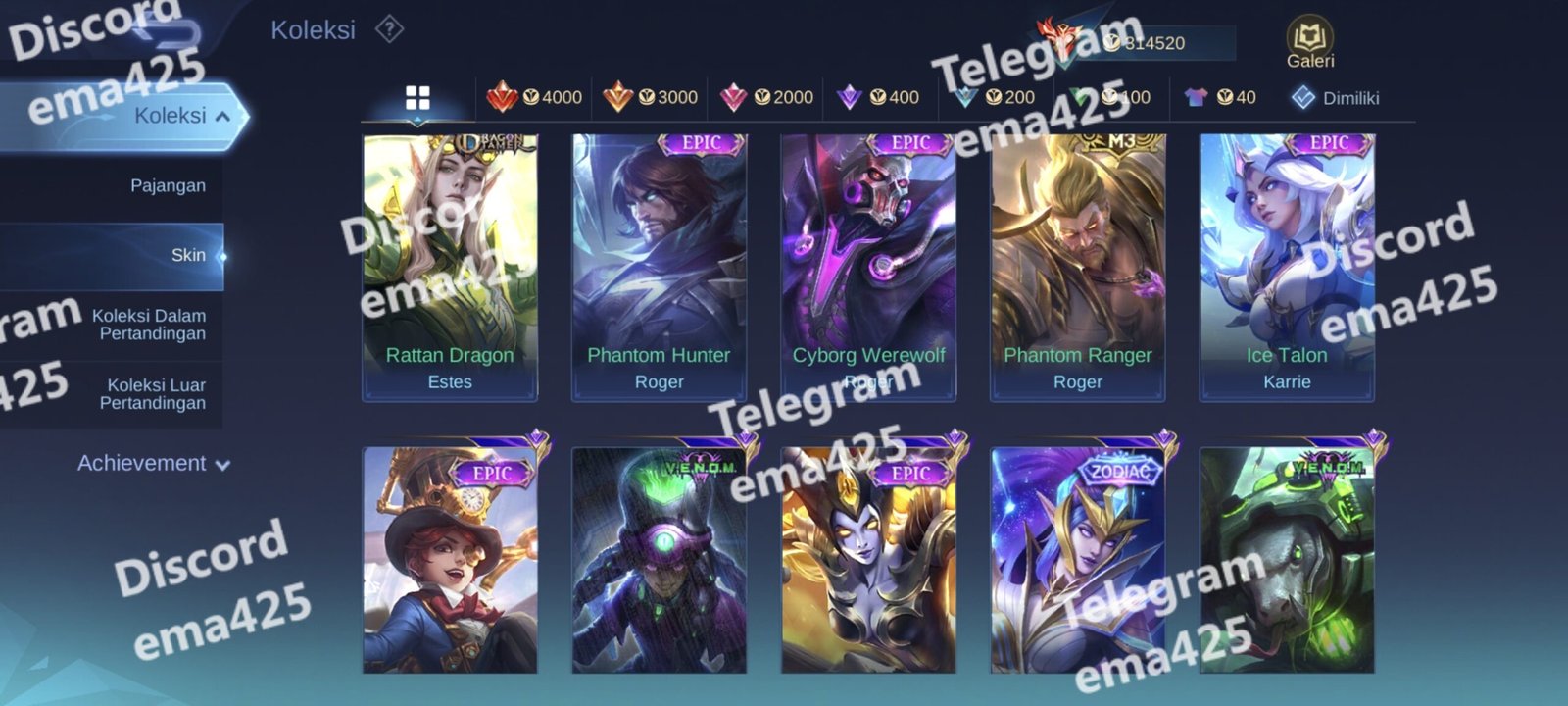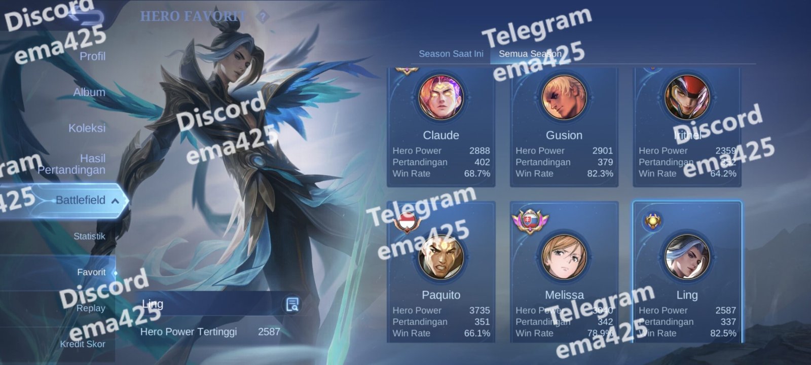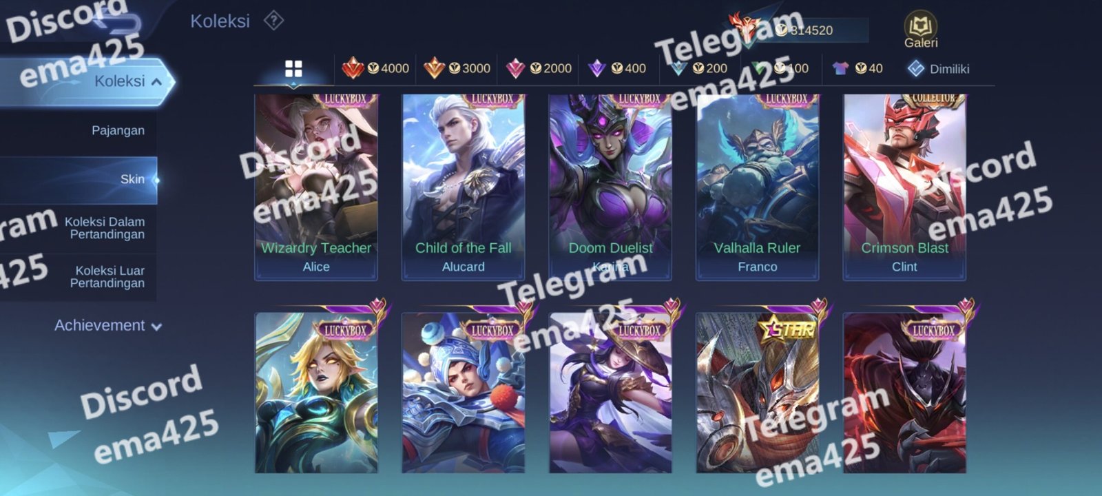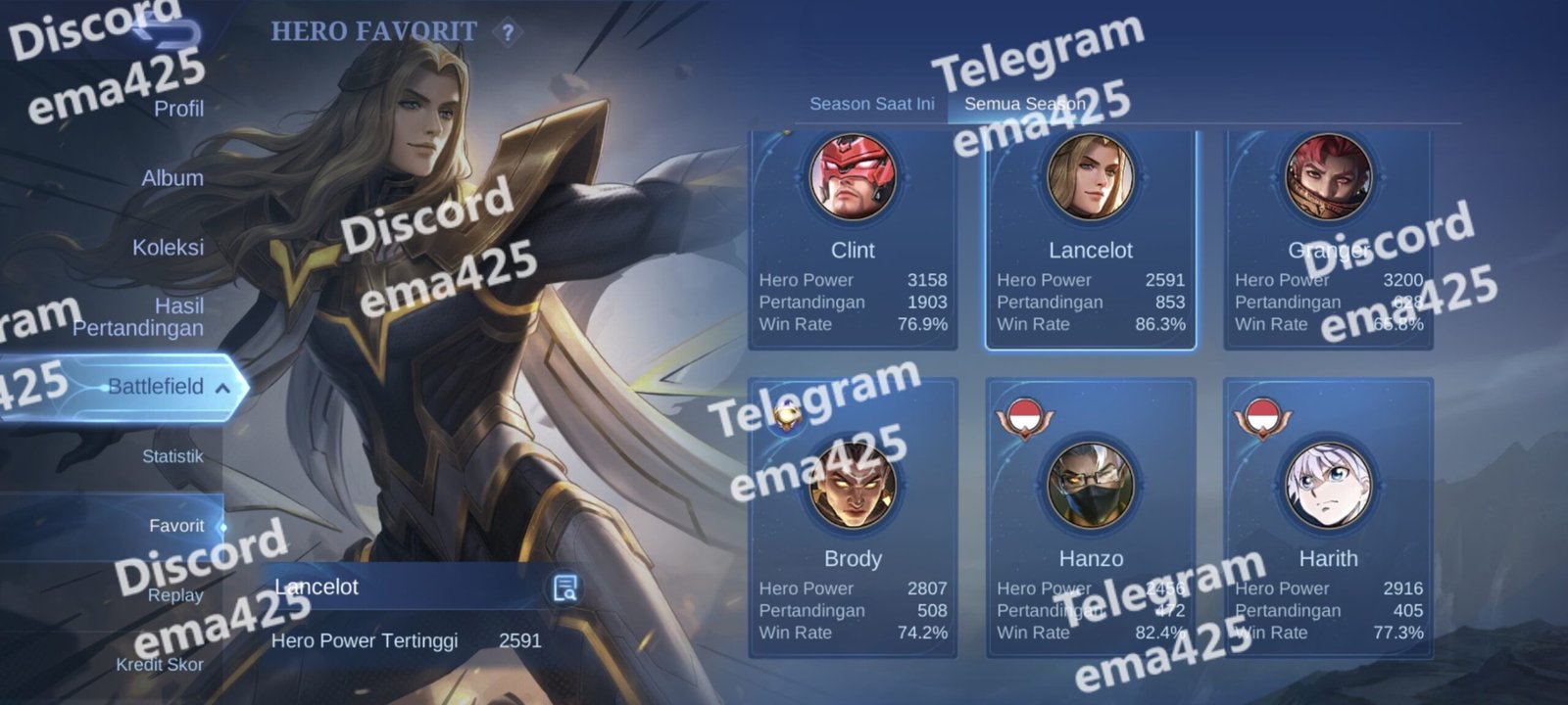 Alice, Alucard, Karina, Franco, Eudora, Zilong, Fanny, Hayabusa, Freya, Estes, Roger, Karrie, Gatotkaca, Irithel, Odette, Martis, Uranus, Chang’e, Kaja, Leomord, Lunox, Guinevere