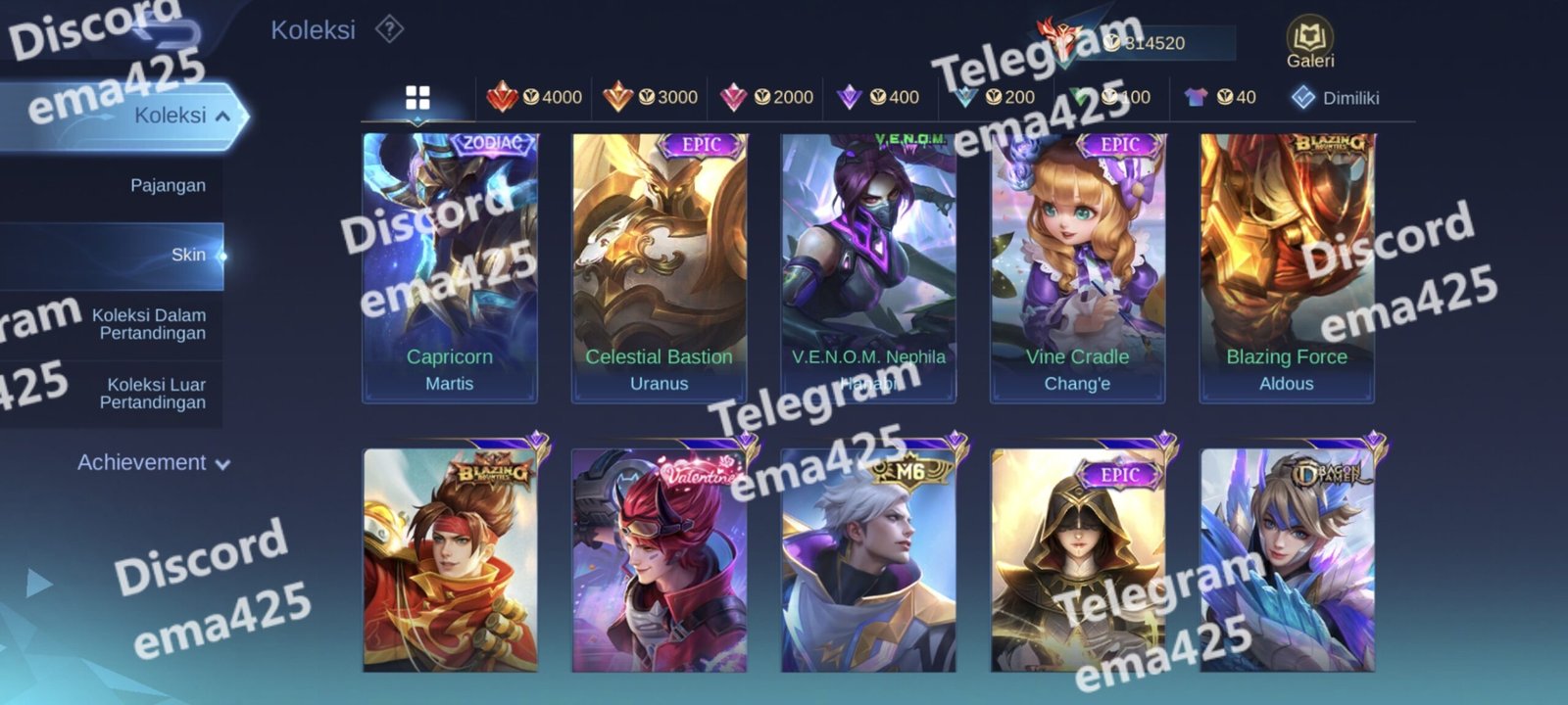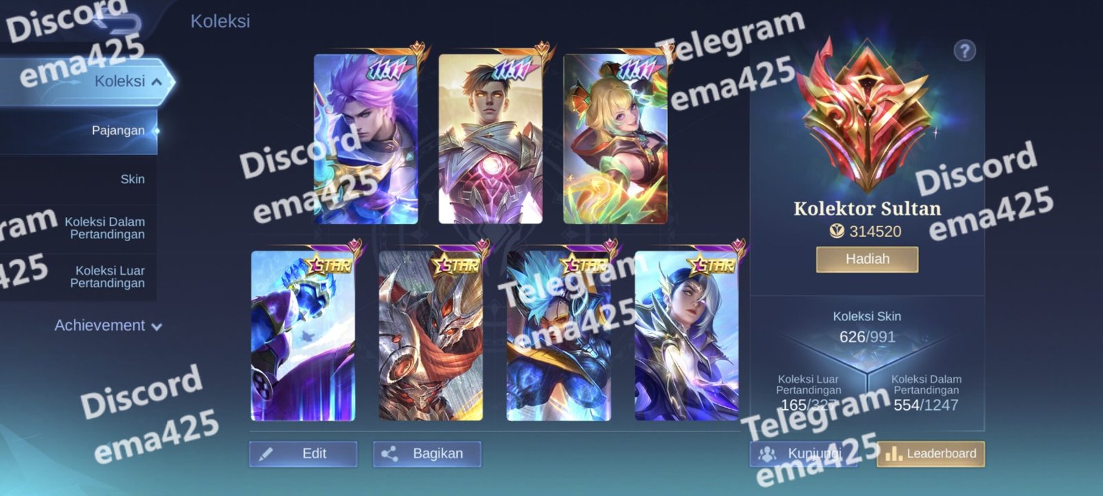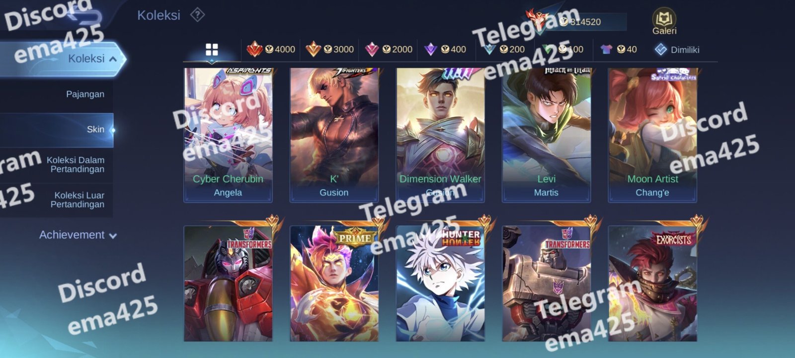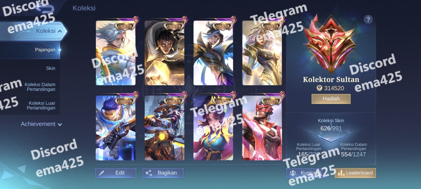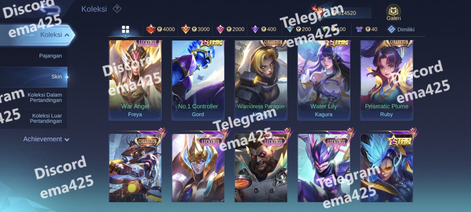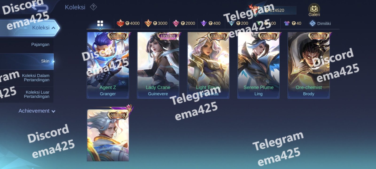 Alice, Alucard, Karina, Franco, Eudora, Zilong, Fanny, Hayabusa, Freya, Estes, Roger, Karrie, Gatotkaca, Irithel, Odette, Martis, Uranus, Chang’e, Kaja, Leomord, Lunox, Guinevere