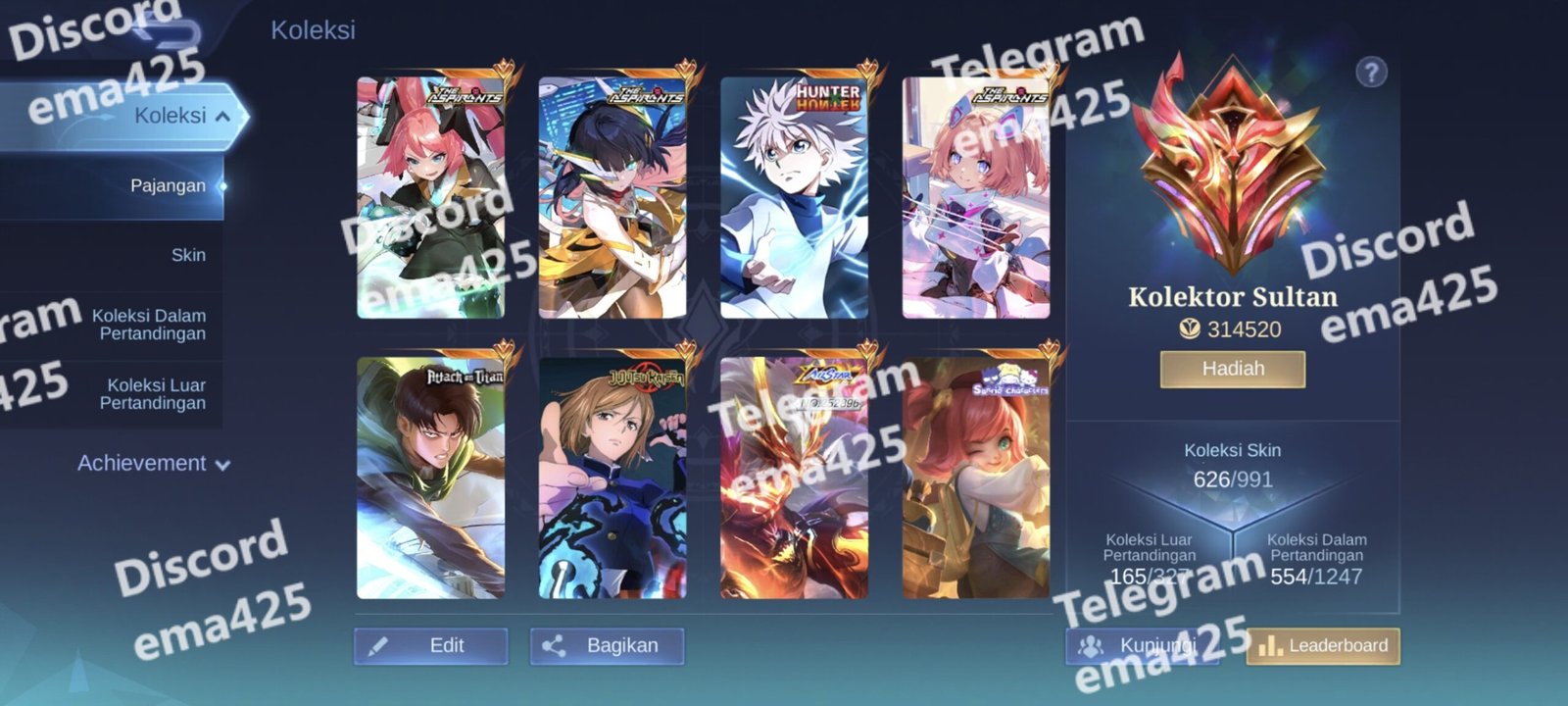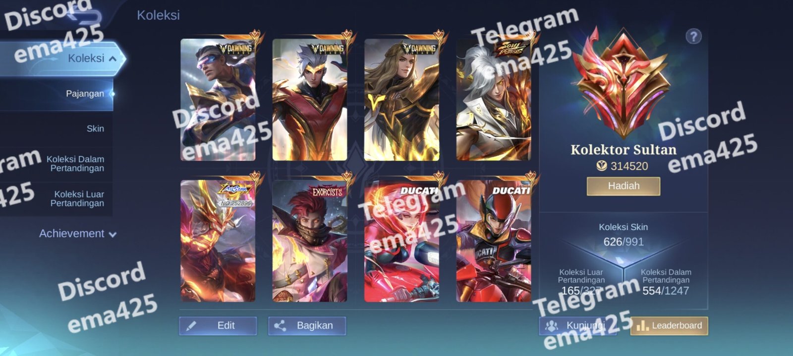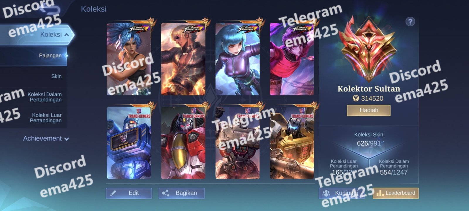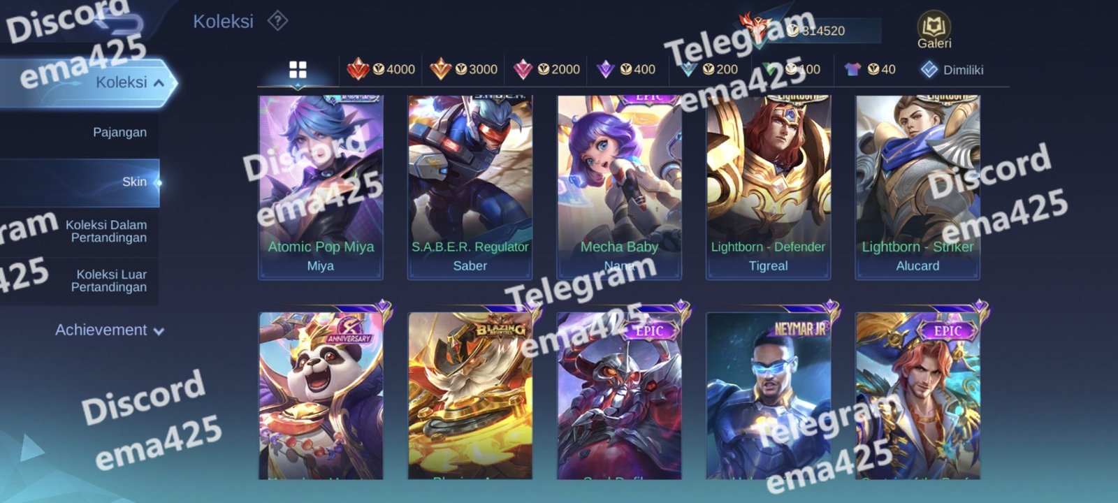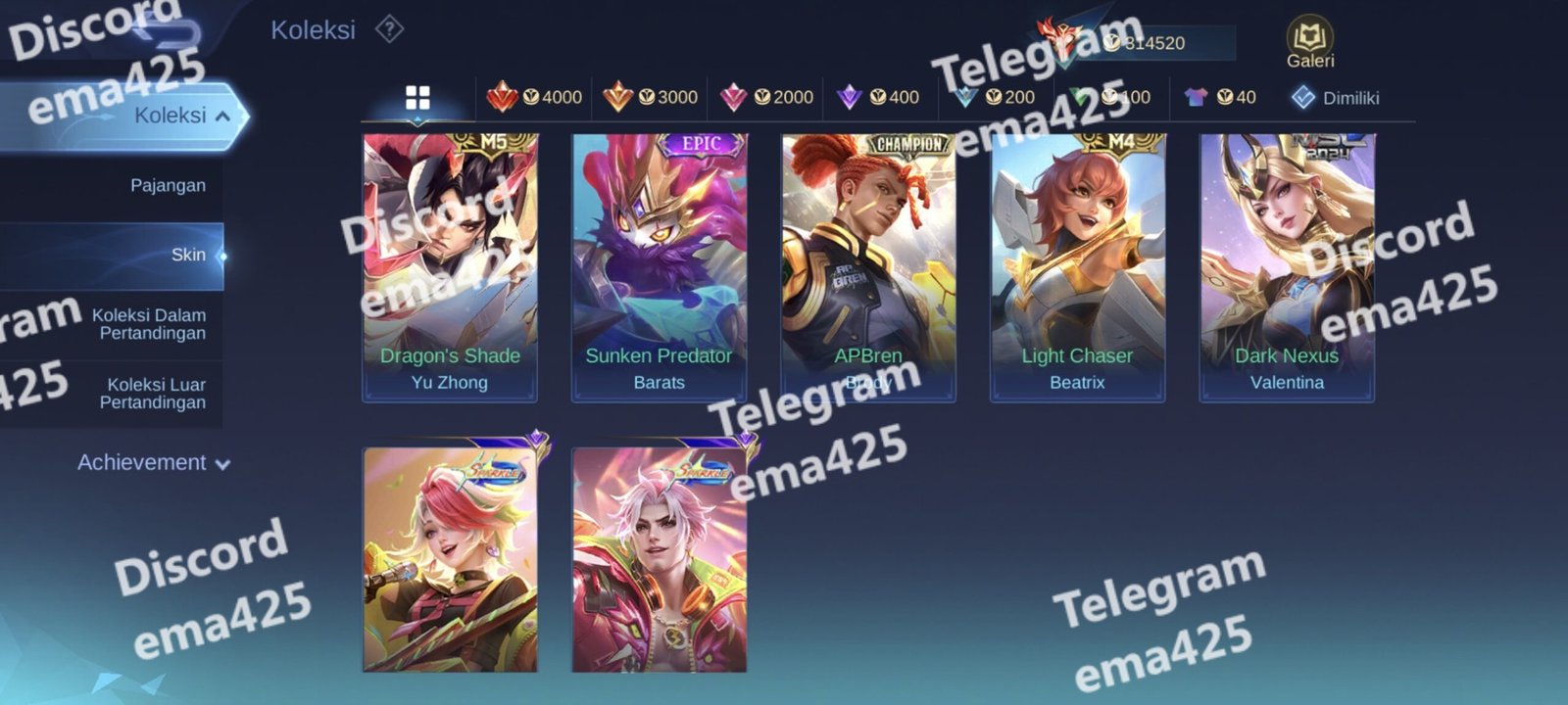 Alice, Alucard, Karina, Franco, Eudora, Zilong, Fanny, Hayabusa, Freya, Estes, Roger, Karrie, Gatotkaca, Irithel, Odette, Martis, Uranus, Chang’e, Kaja, Leomord, Lunox, Guinevere
