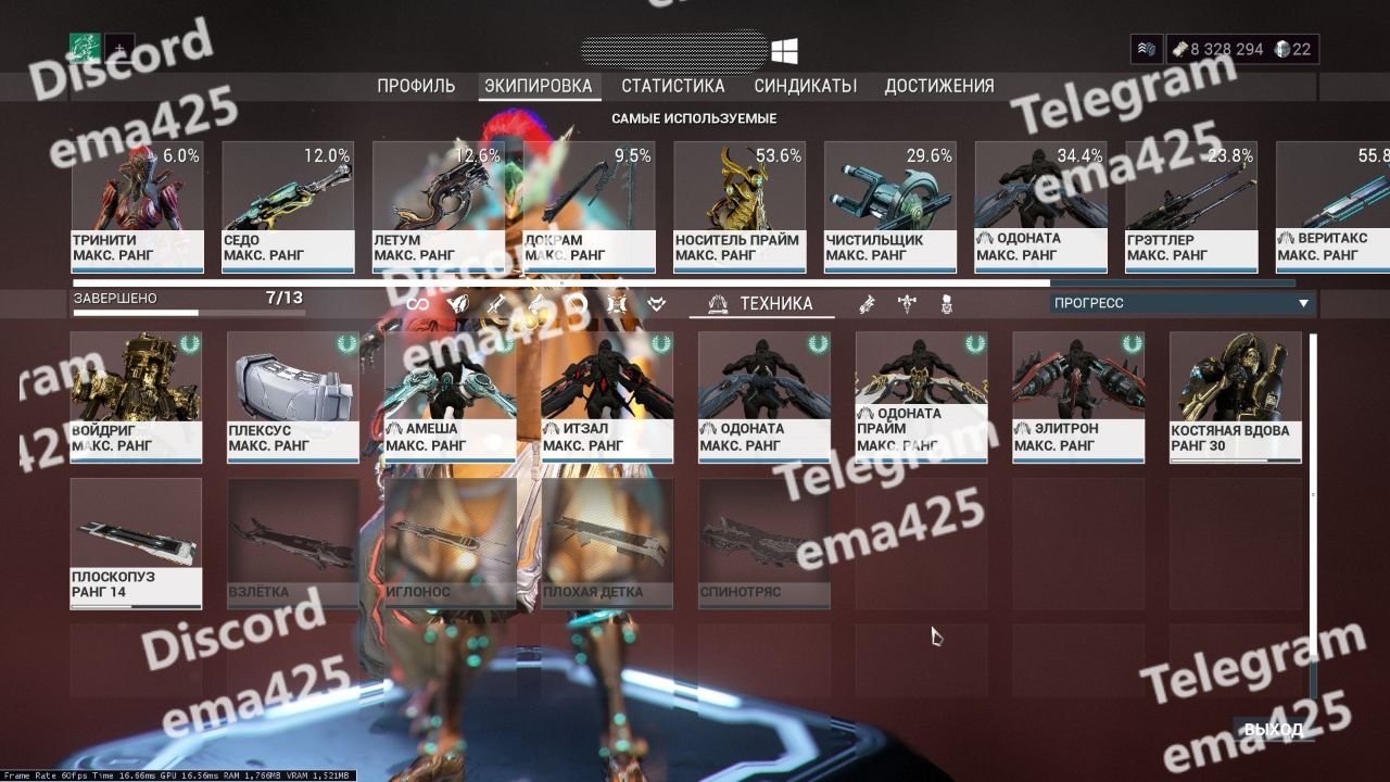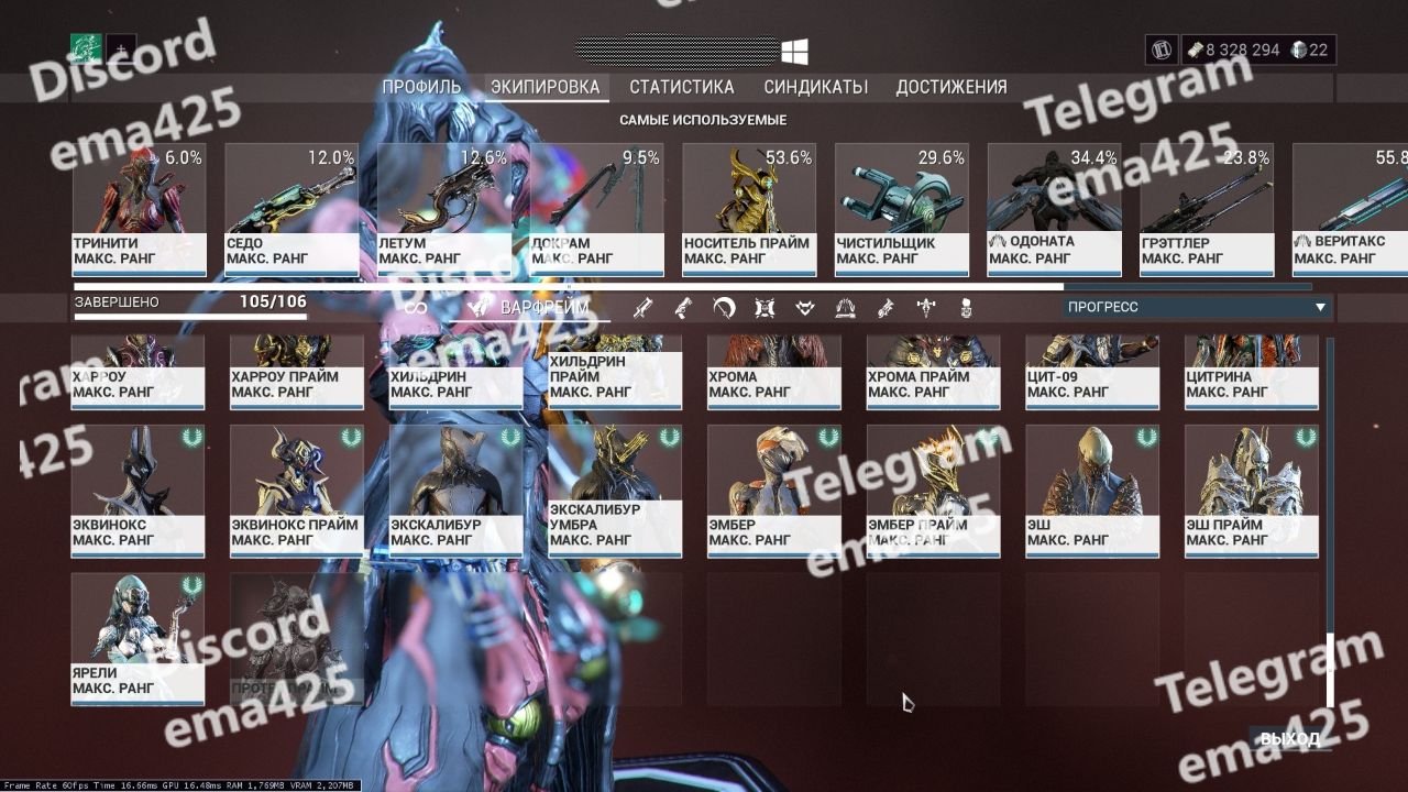 • 100% Warframes Unlocked (Prime & Deluxe included) :