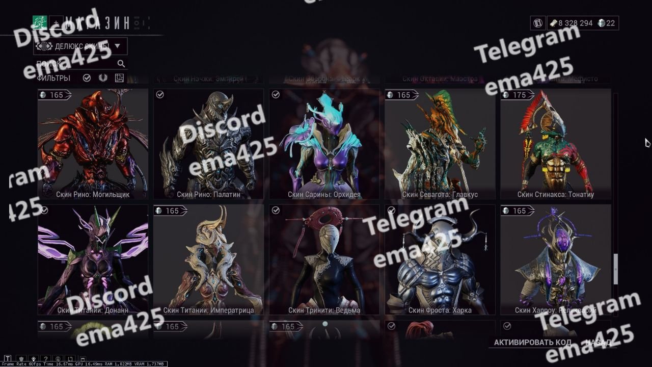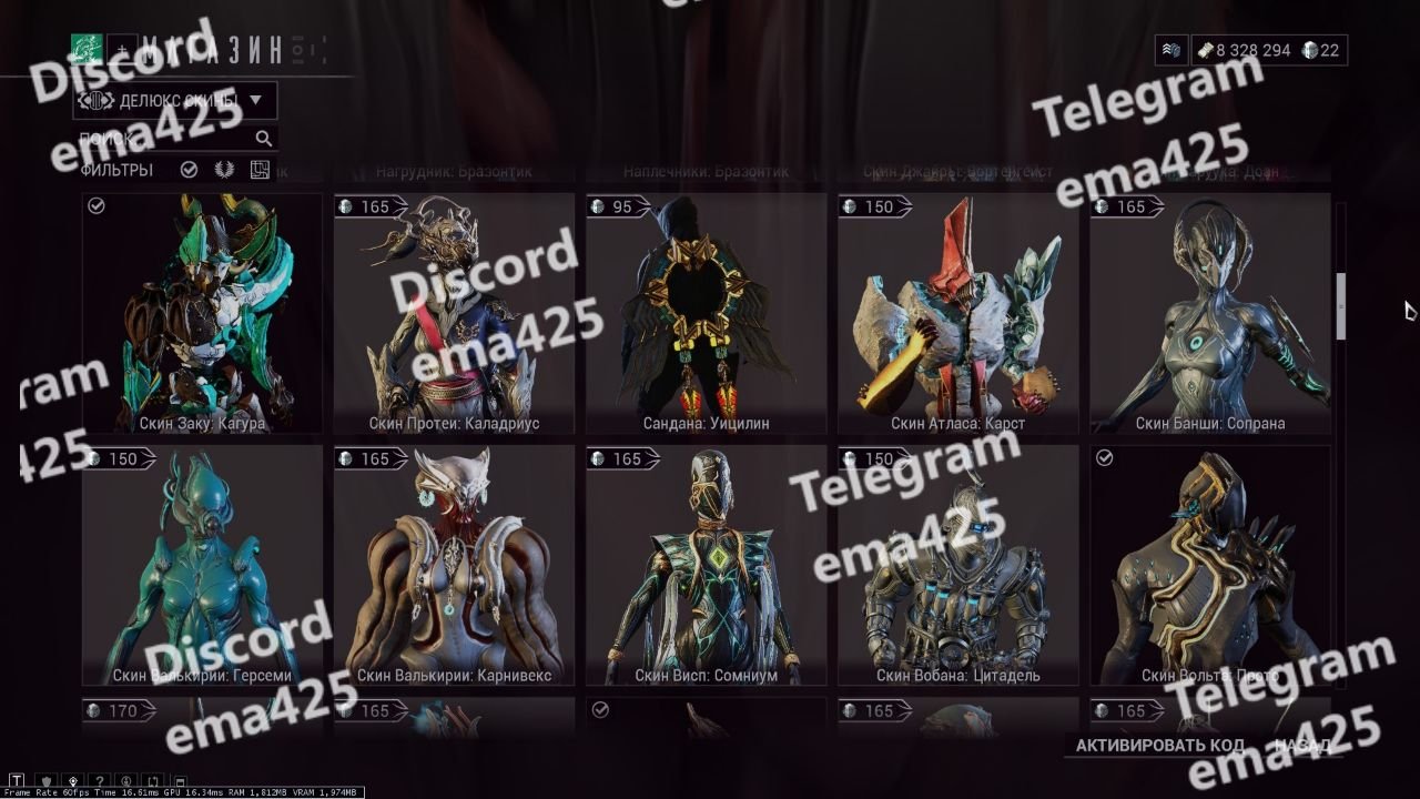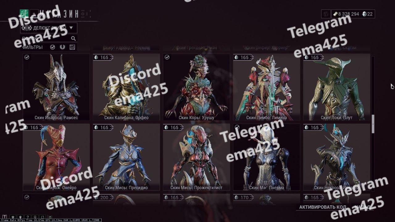 – Umbra Excalibur, Wisp Prime, Revenant, Styanax, Harrow Prime, Lavos, etc.