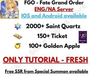 Account come with – Only Tutorial Done – Fuyuki – Available on both platform IOS and Android – 2000+ SQ – 150 Summon Tickets – 100 Golden Apple – NA – GLOBAL SERVER (ENGLISH)