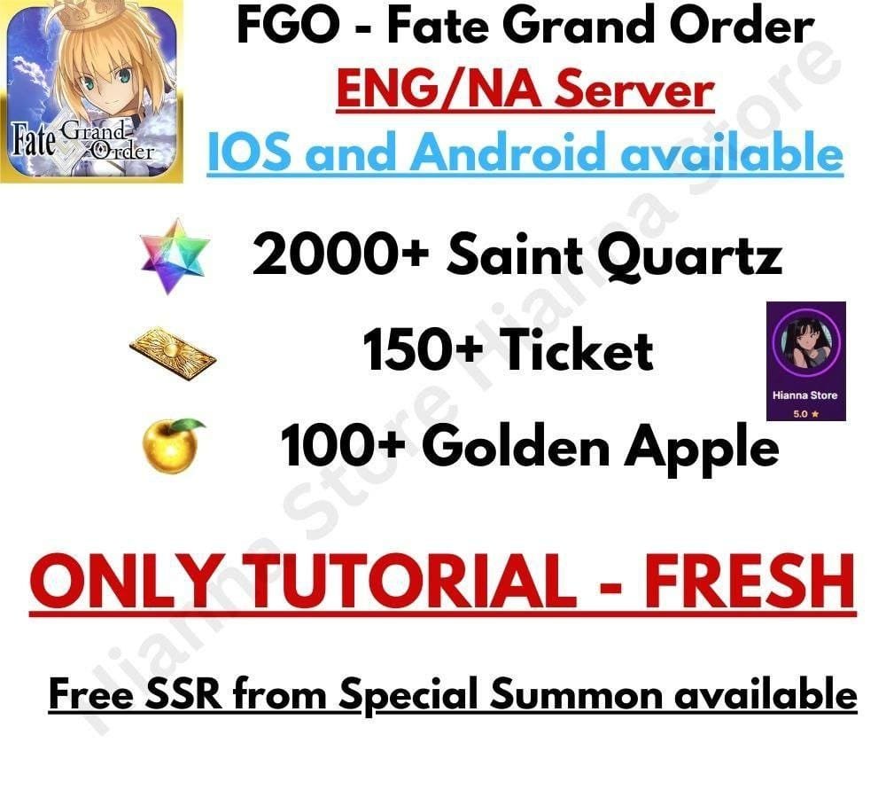 Account come with – Only Tutorial Done – Fuyuki – Available on both platform IOS and Android – 2000+ SQ – 150 Summon Tickets – 100 Golden Apple – NA – GLOBAL SERVER (ENGLISH)