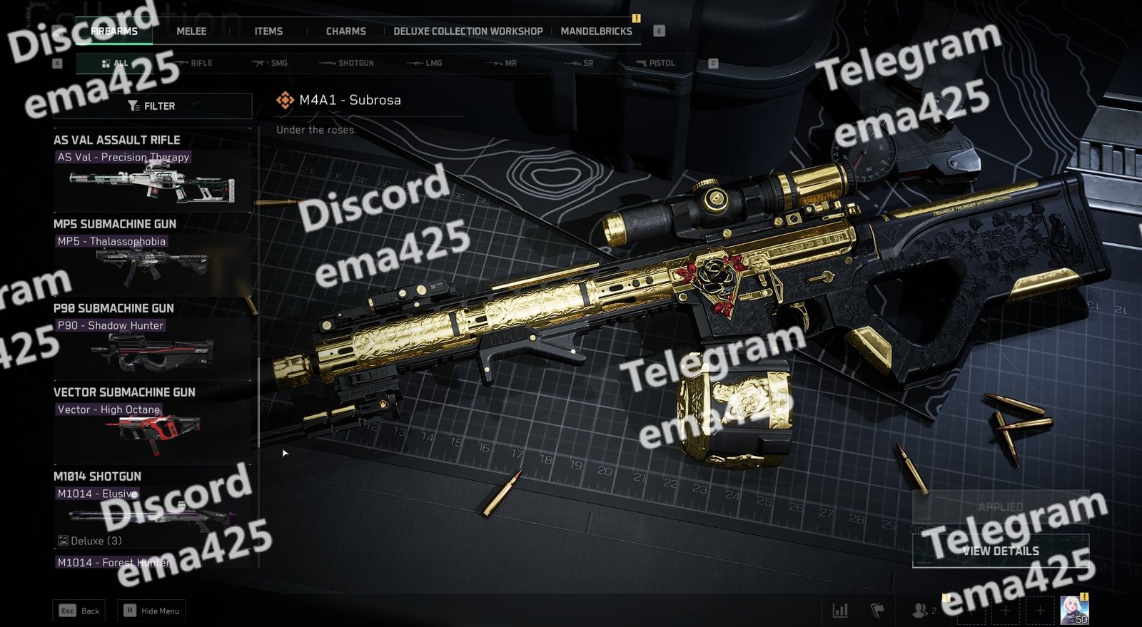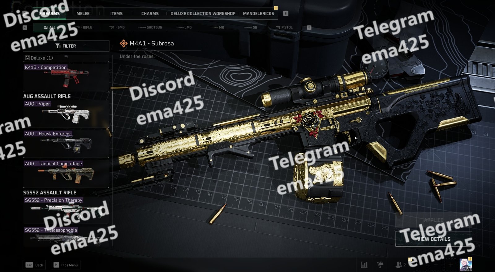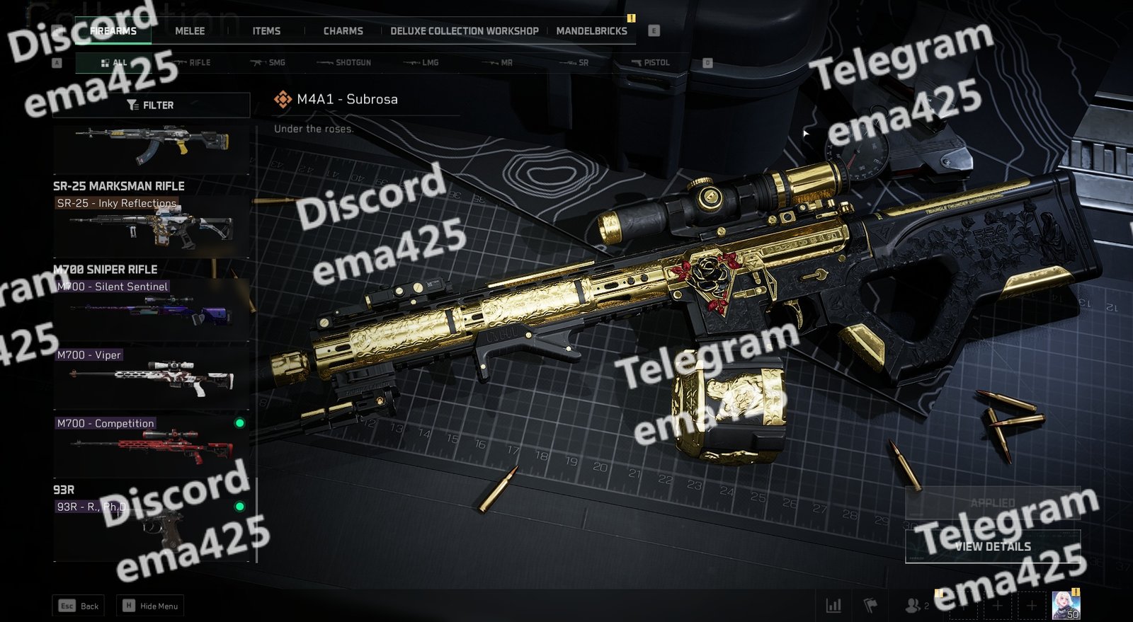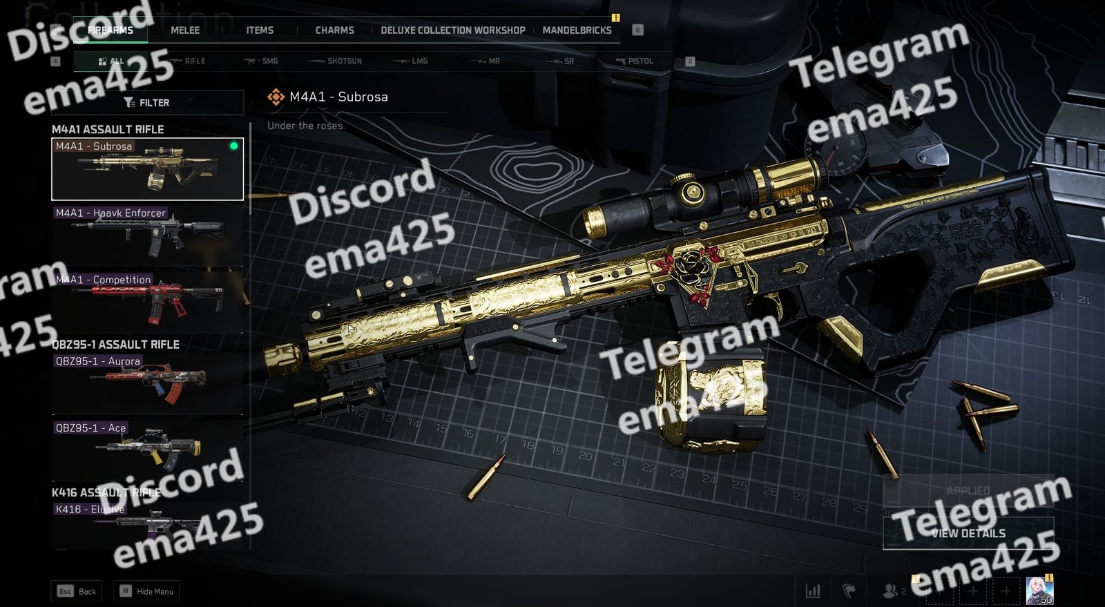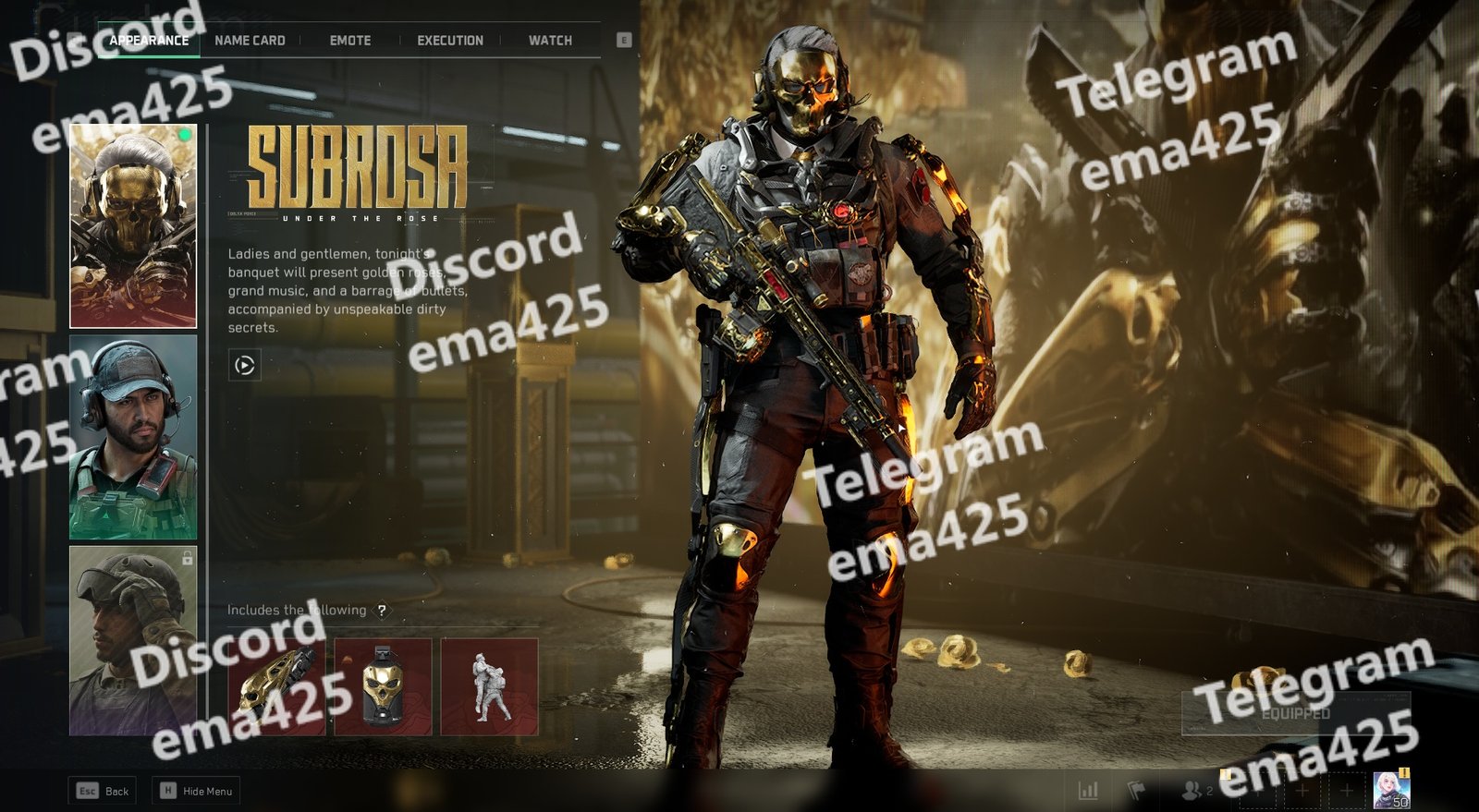 • Subrosa – Full set with golden weapon + appearance + name card