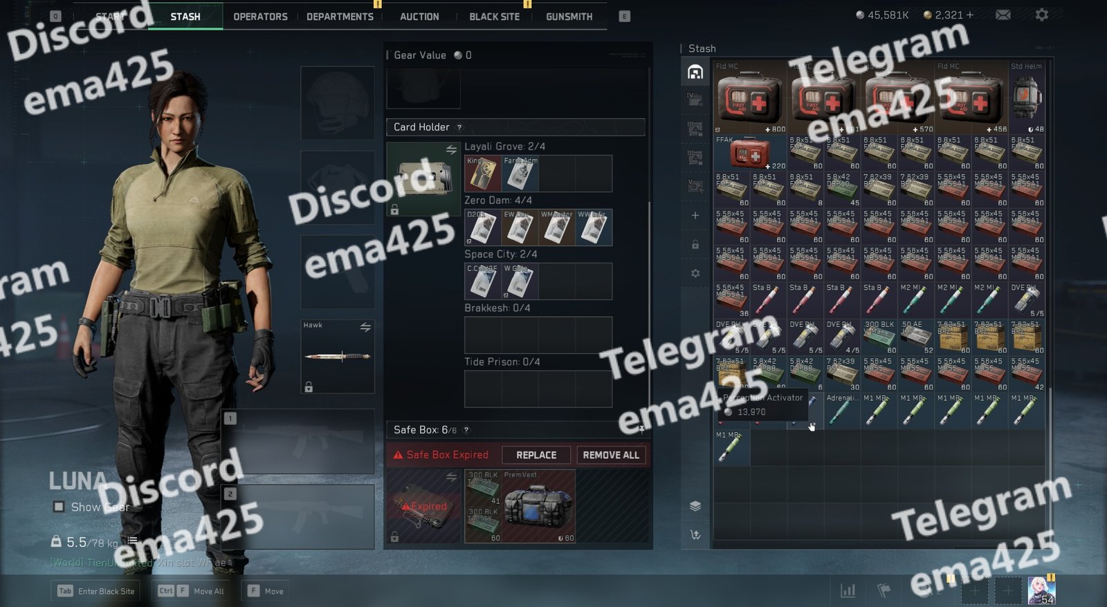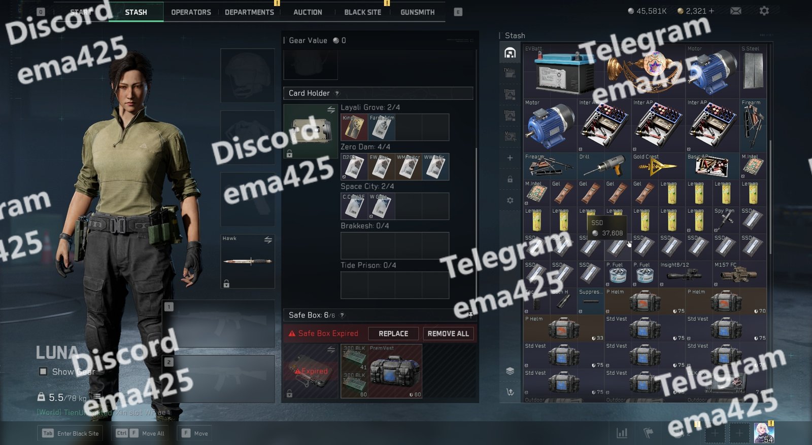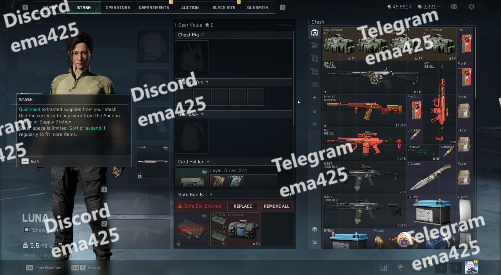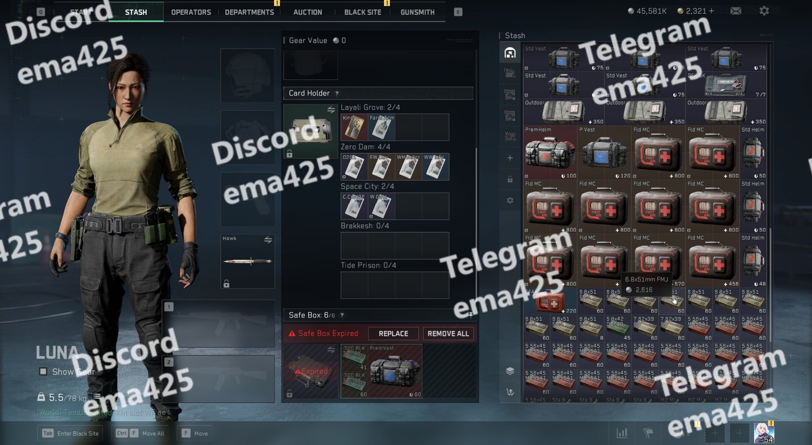 • Safe Box 6/6 slots (multiple expired items)