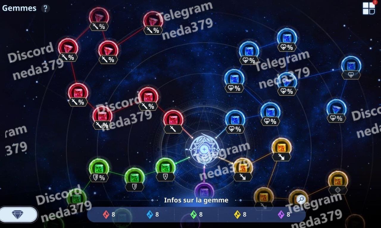 Full Diamond (Blade Full Purple) Nearly All Gemstones Lvl 4 and some Lvl 3 (see attached screenshots for details)