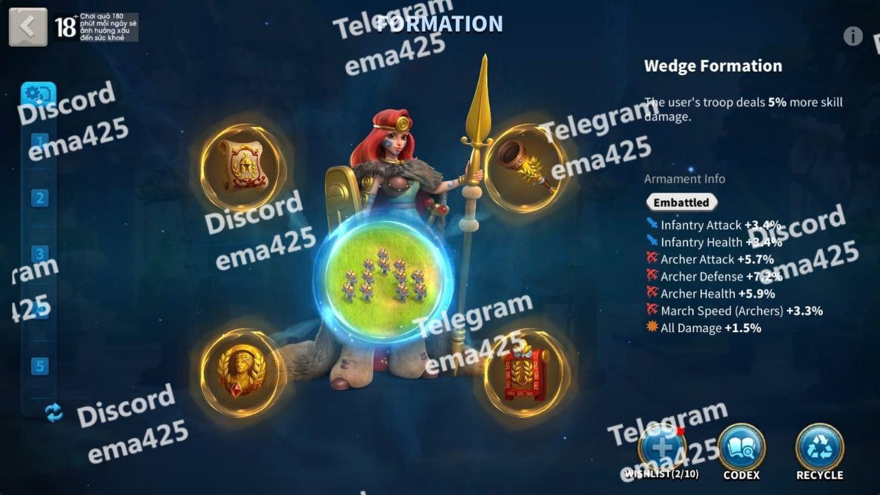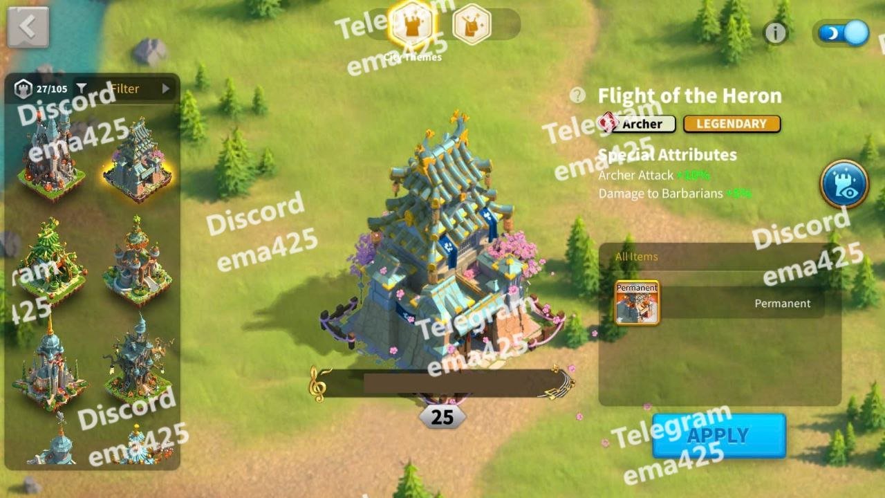 • Flight of the Heron: +10% Archer Attack, +5% Barbarian Damage