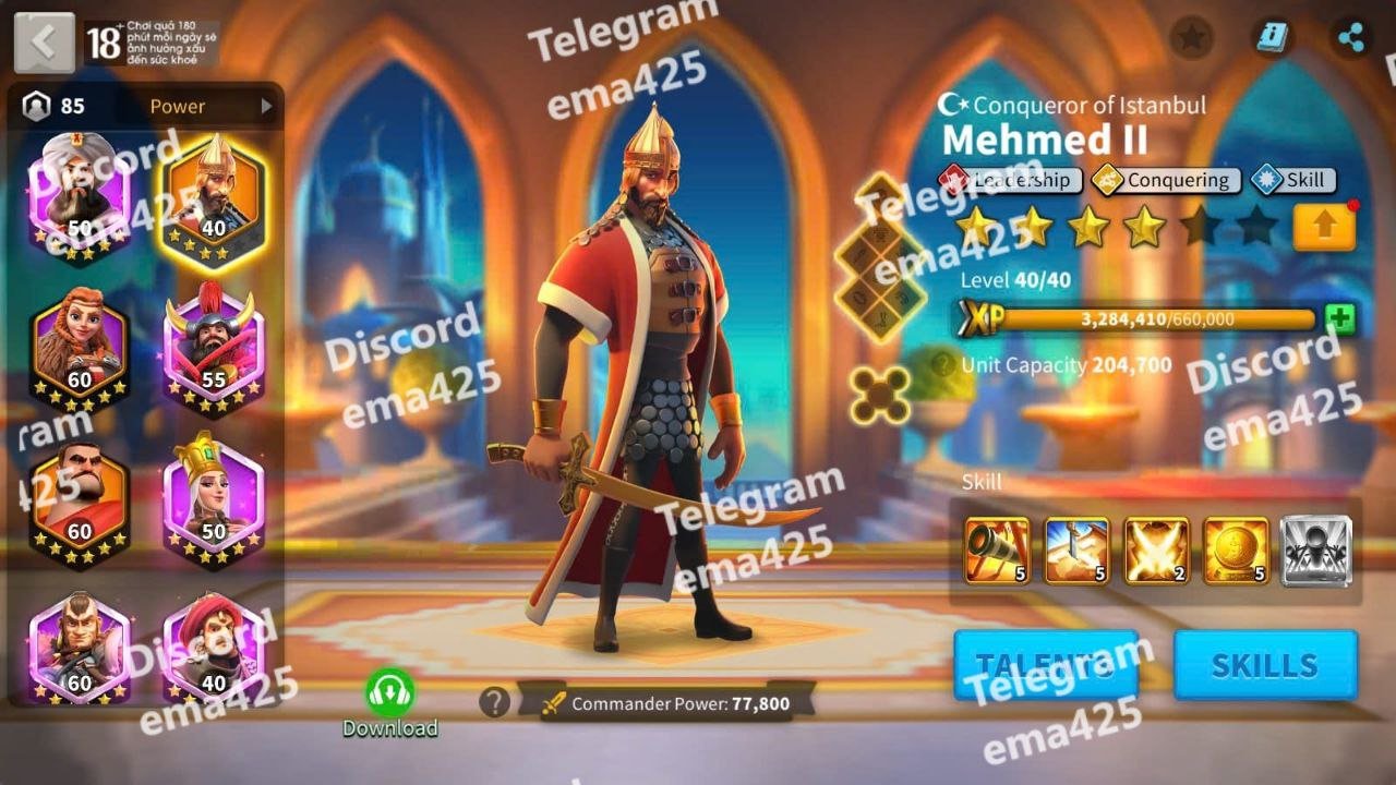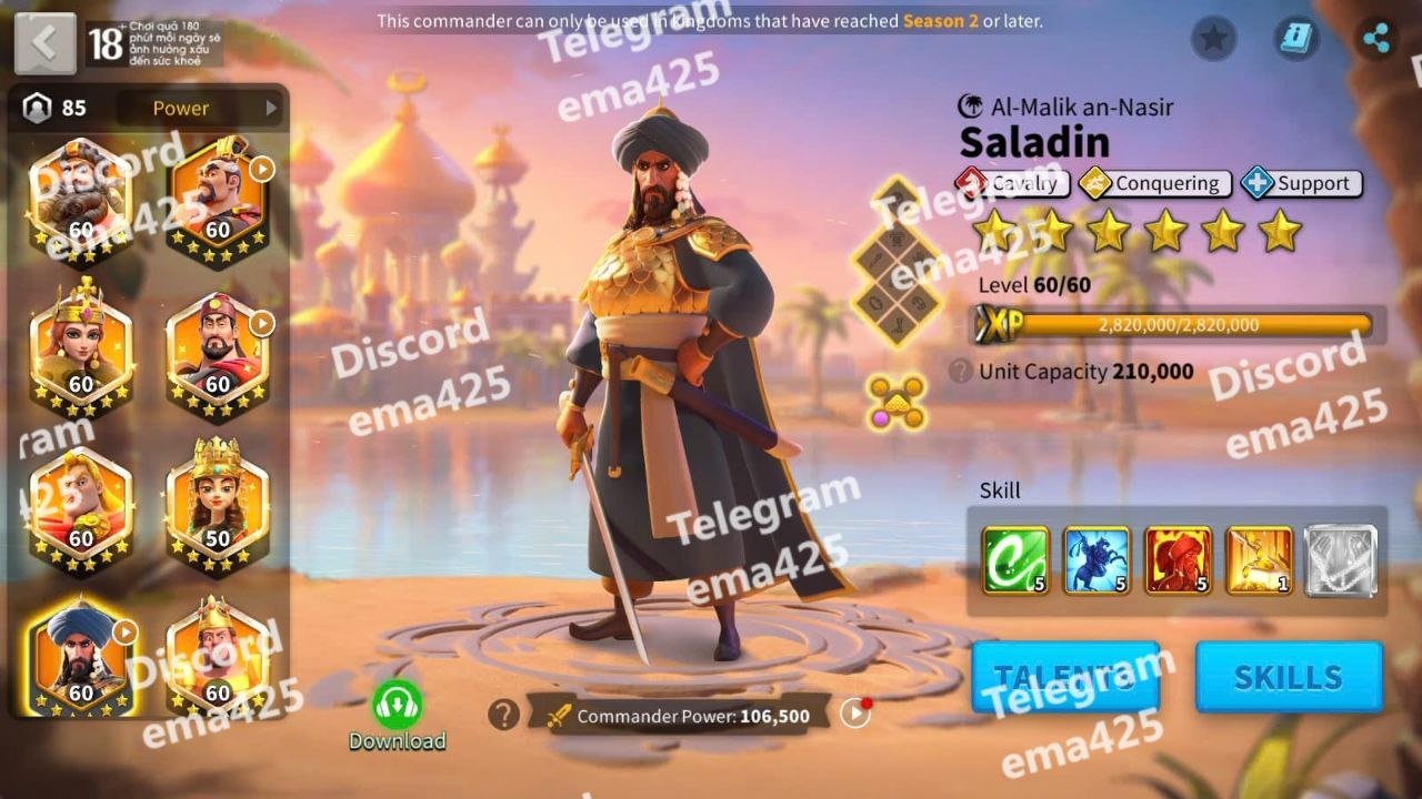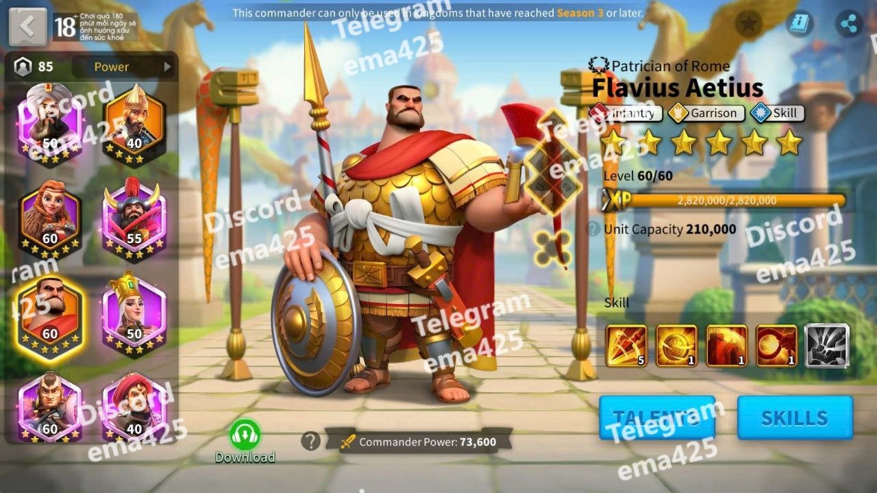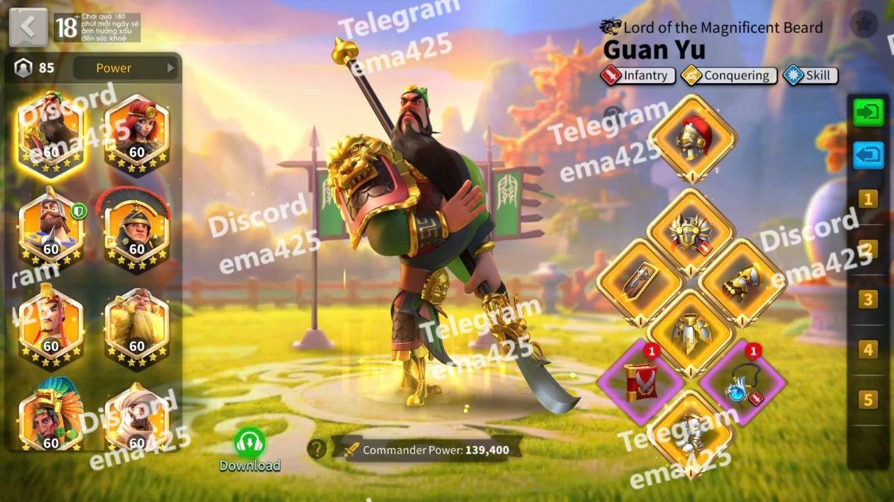 • Guan Yu, Scipio Africanus P, Pakal, Sargon, Tariq, Harald, Boudica P, Charles Martel, Liu Che, Seondeok, El Cid, Alex, Cleopatra, Ishida