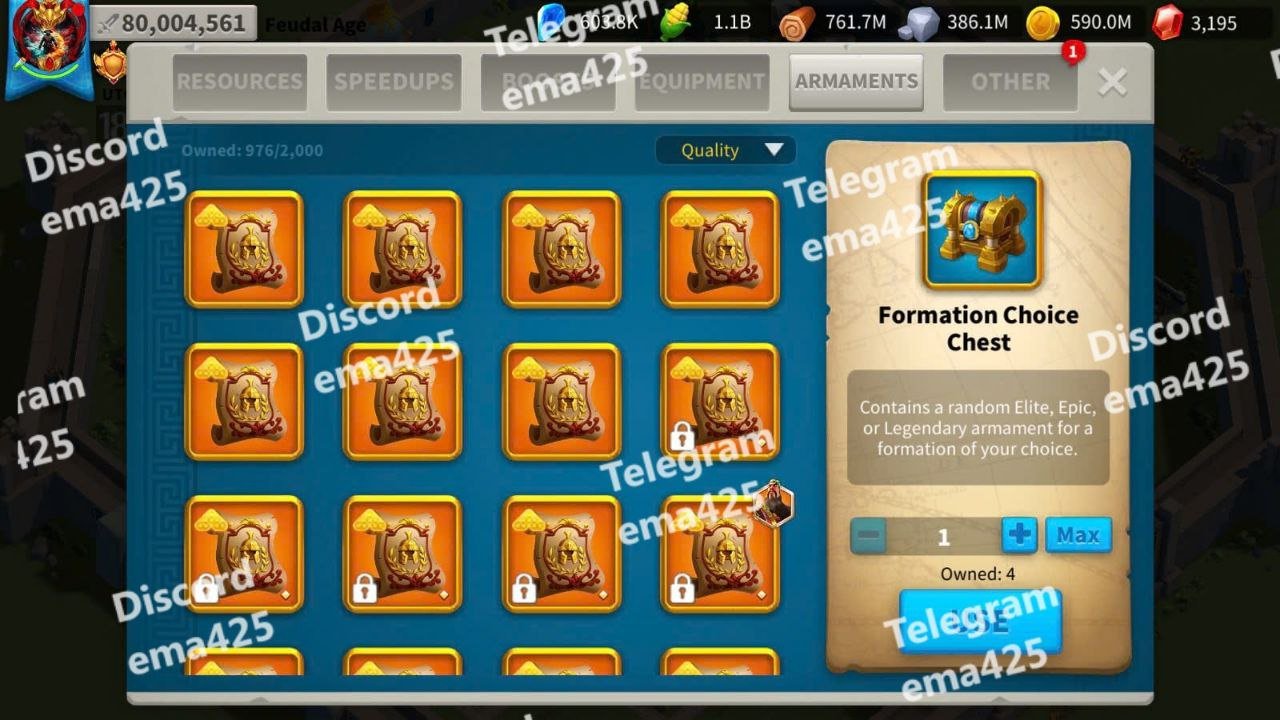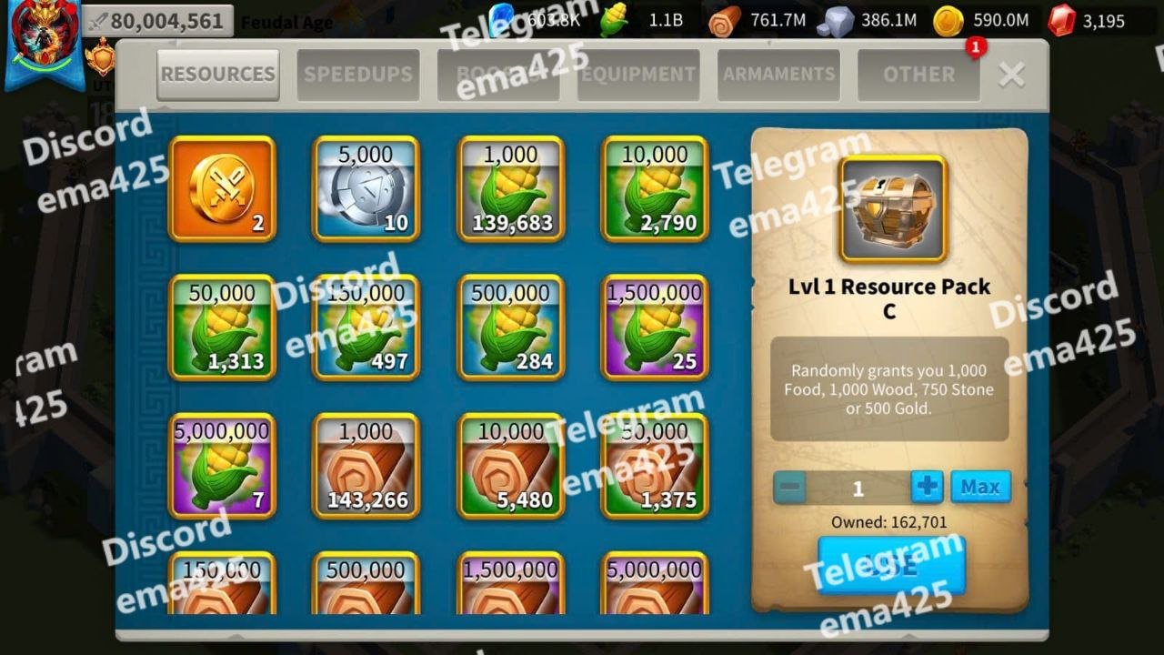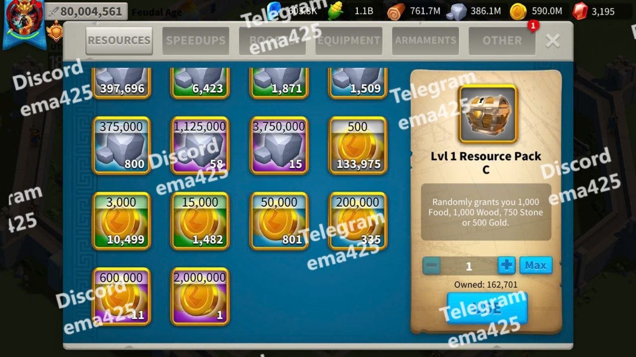 • Resources: 1.1B Food | 761M Wood | 386M Stone | 590M Gold