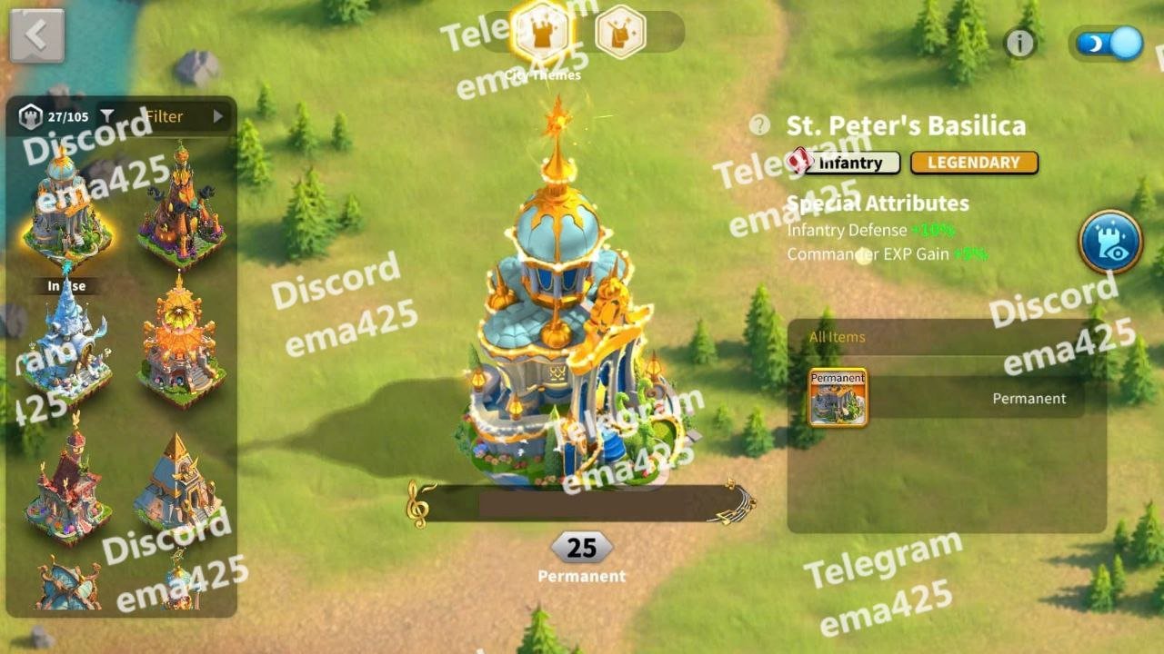 • St. Peter’s Basilica: +10% Infantry Defense, +5% Commander EXP