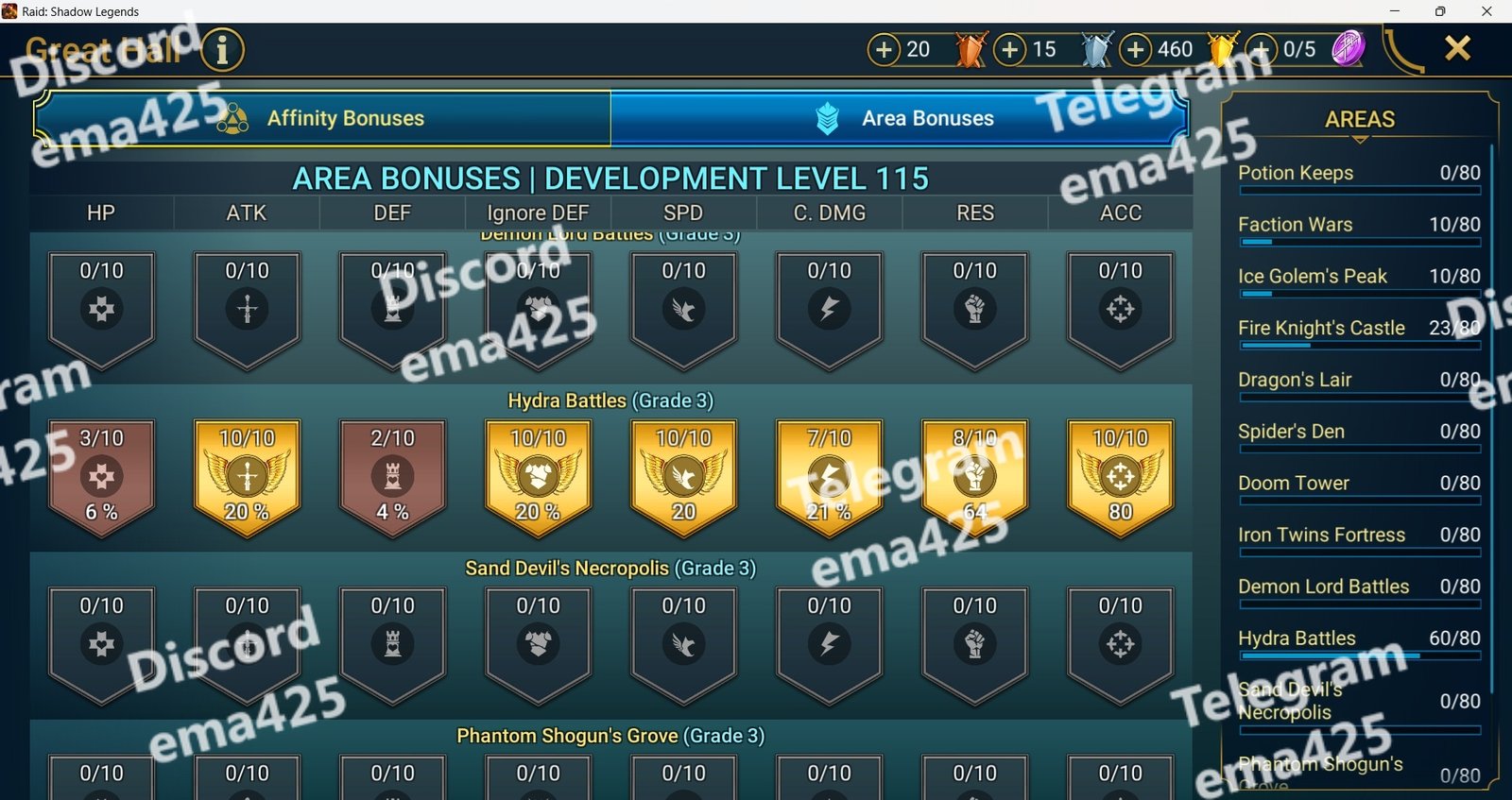 Hydra bonuses: ATK 10/10 20, DEF 2/10 4, SPD 10/10 20, C.DMG 7/10 21, RES 8/10 64, ACC 10/10 80