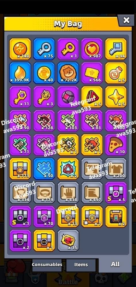 • Consumables: Over 399K consumables including keys, materials, and crystals.