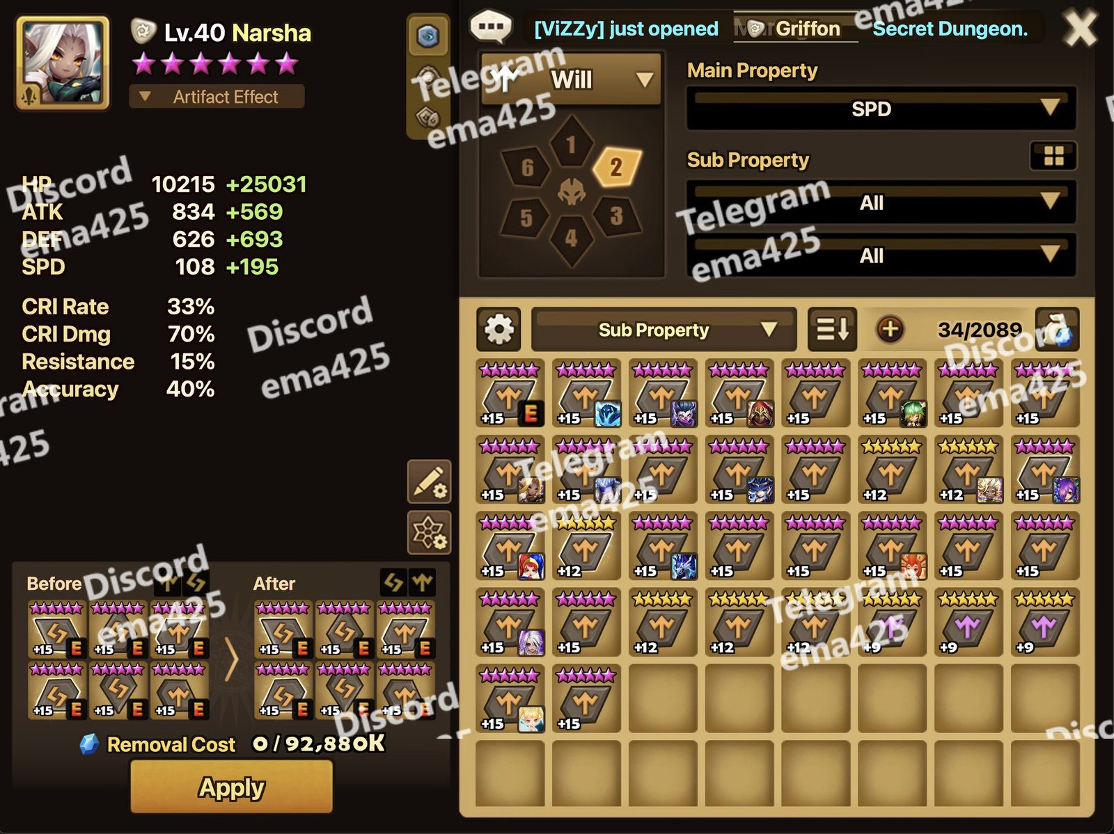Will Rune Quality: CRI Rate 58% + ATK% + SPD + DEF%