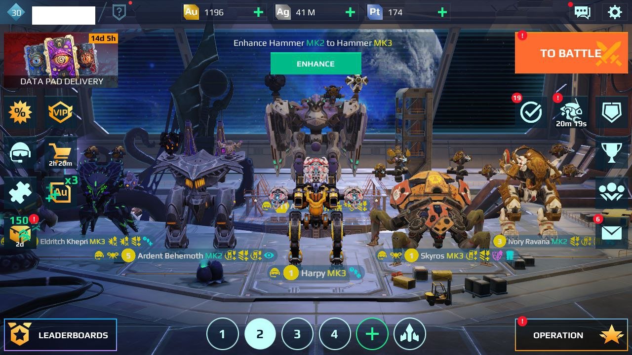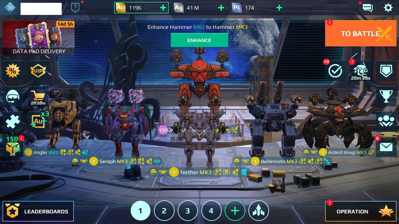 More Details: 10 weapon MK3 – A lot of weapon MK2 – A lot Pilots Legends WR83: Android | Lv30 – Rank Gold I – 4 Workshop | 4 MK3 – 1 MK2 WShop1 | 3 MK3 – 2 MK2 WShop 2