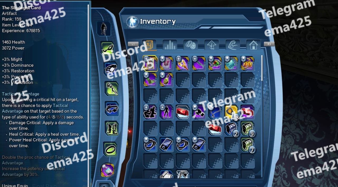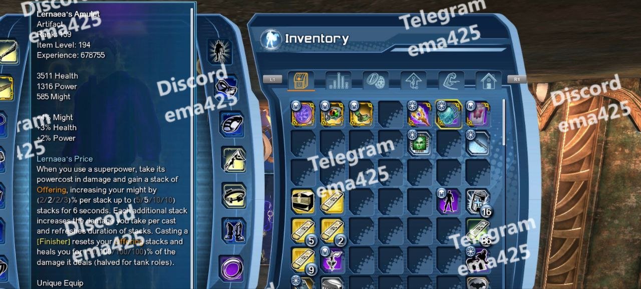 – Lernea’s Amulet, Solar Amplifier, EoG, Scrap of Soul Cloak, Gemini, etc.