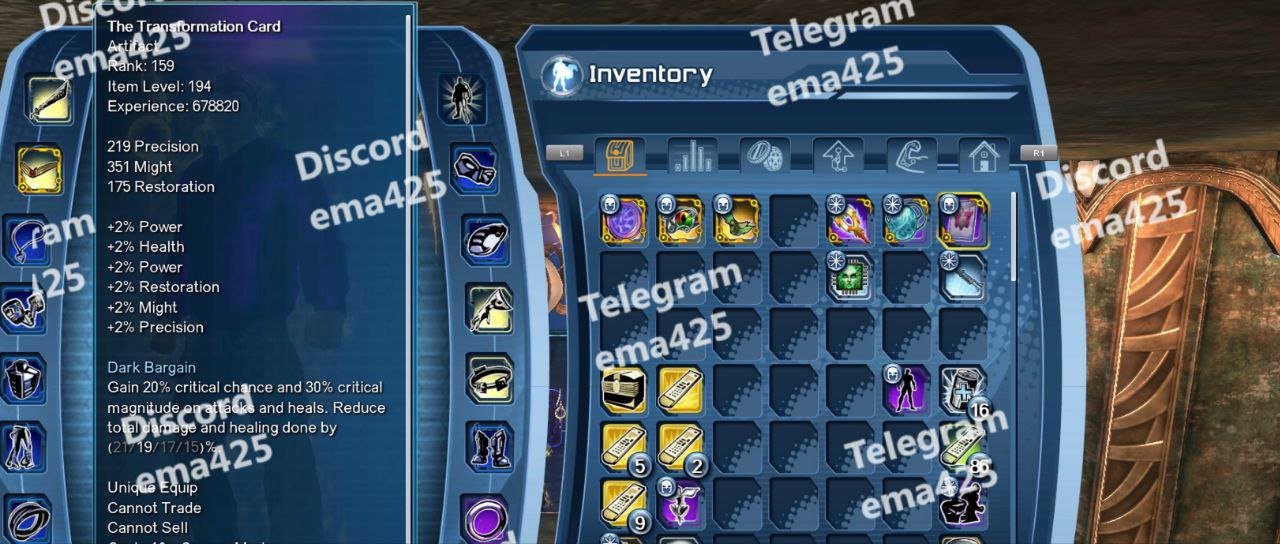 – Lernea’s Amulet, Solar Amplifier, EoG, Scrap of Soul Cloak, Gemini, etc.